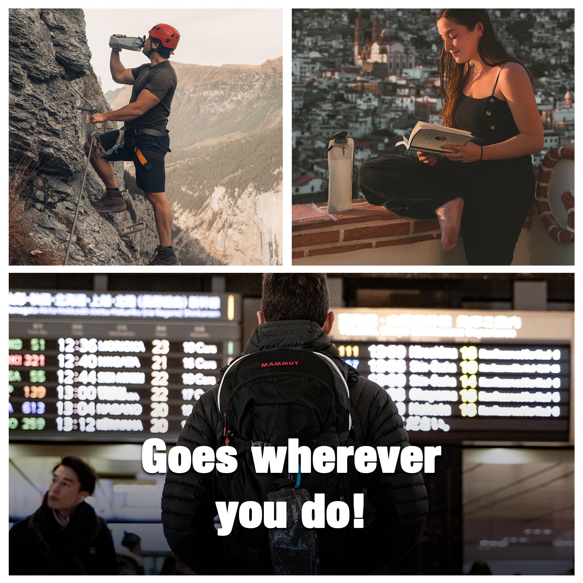 Vapur Collapsible and Flexible Water Bottle with Detachable Carabiner: Our anti-bottle stands when full and folds small when empty. Stores easily in pocket, purse, or backpack for portable hydration
