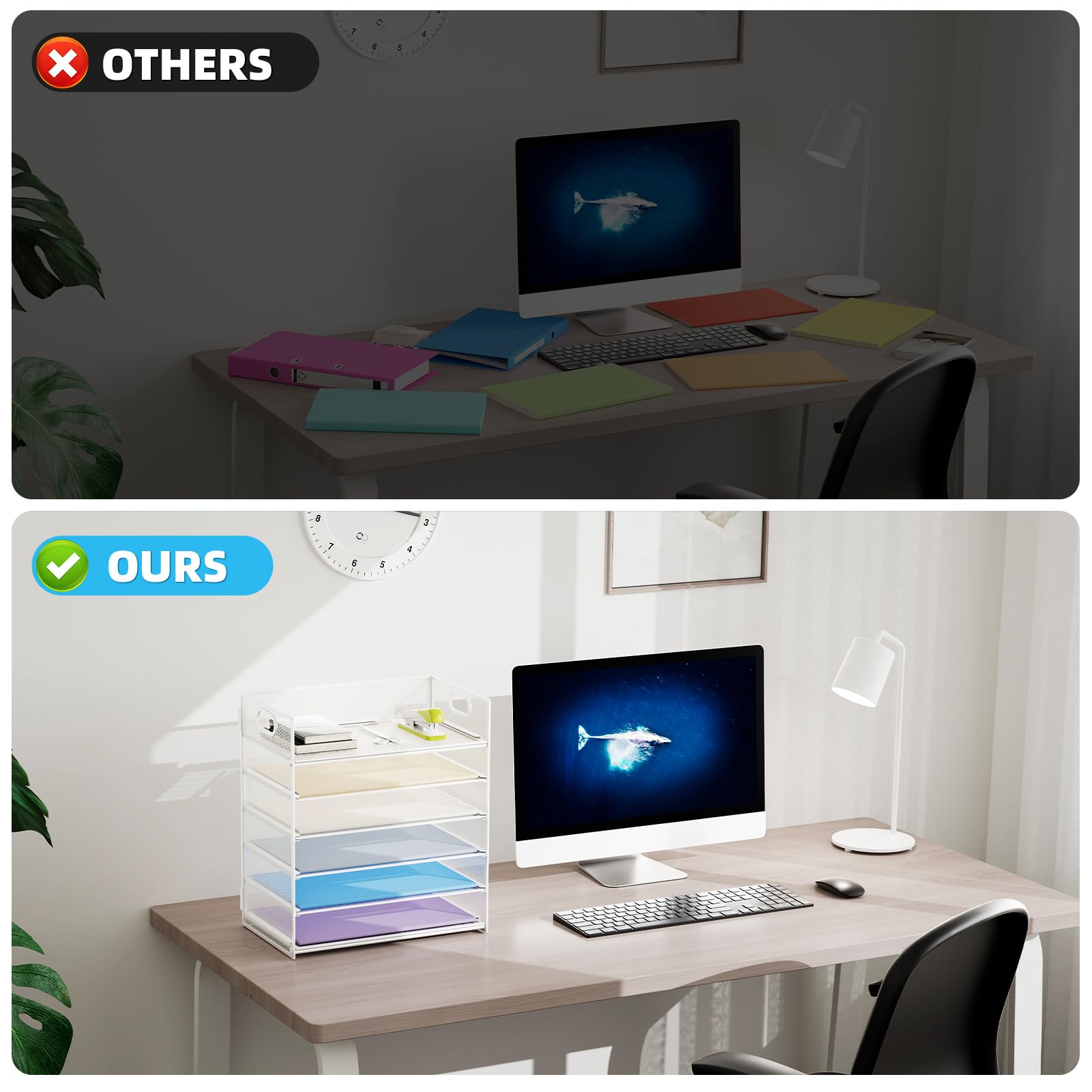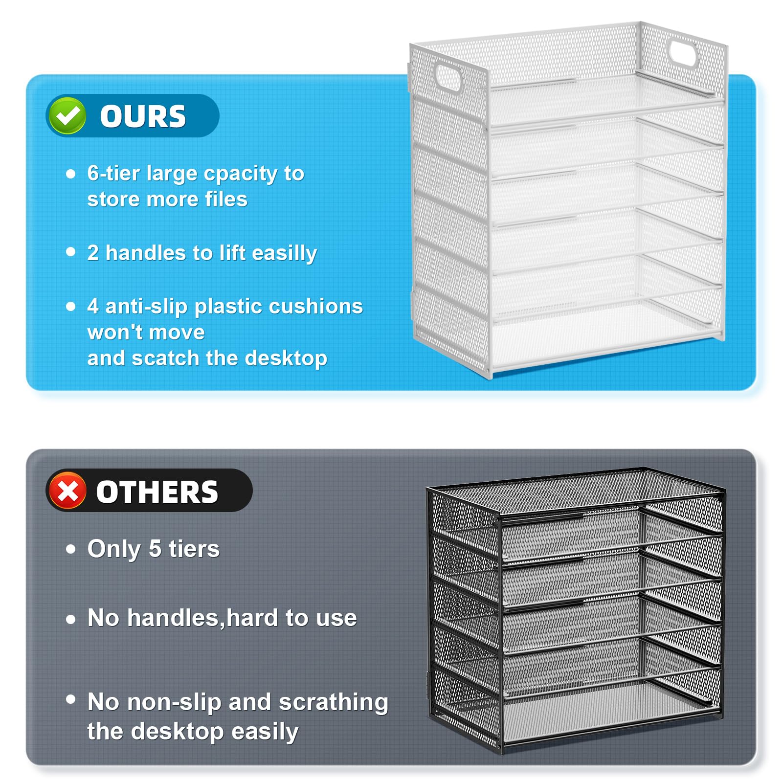 【MULTI-PURPOSE ORGANIZER】6-tier layered design and large capacity make the paper organizer become an ideal choice for managing all kinds of letter-size letters, paper, books, bills, etc. Let you quickly identify the contents of each compartment super easy