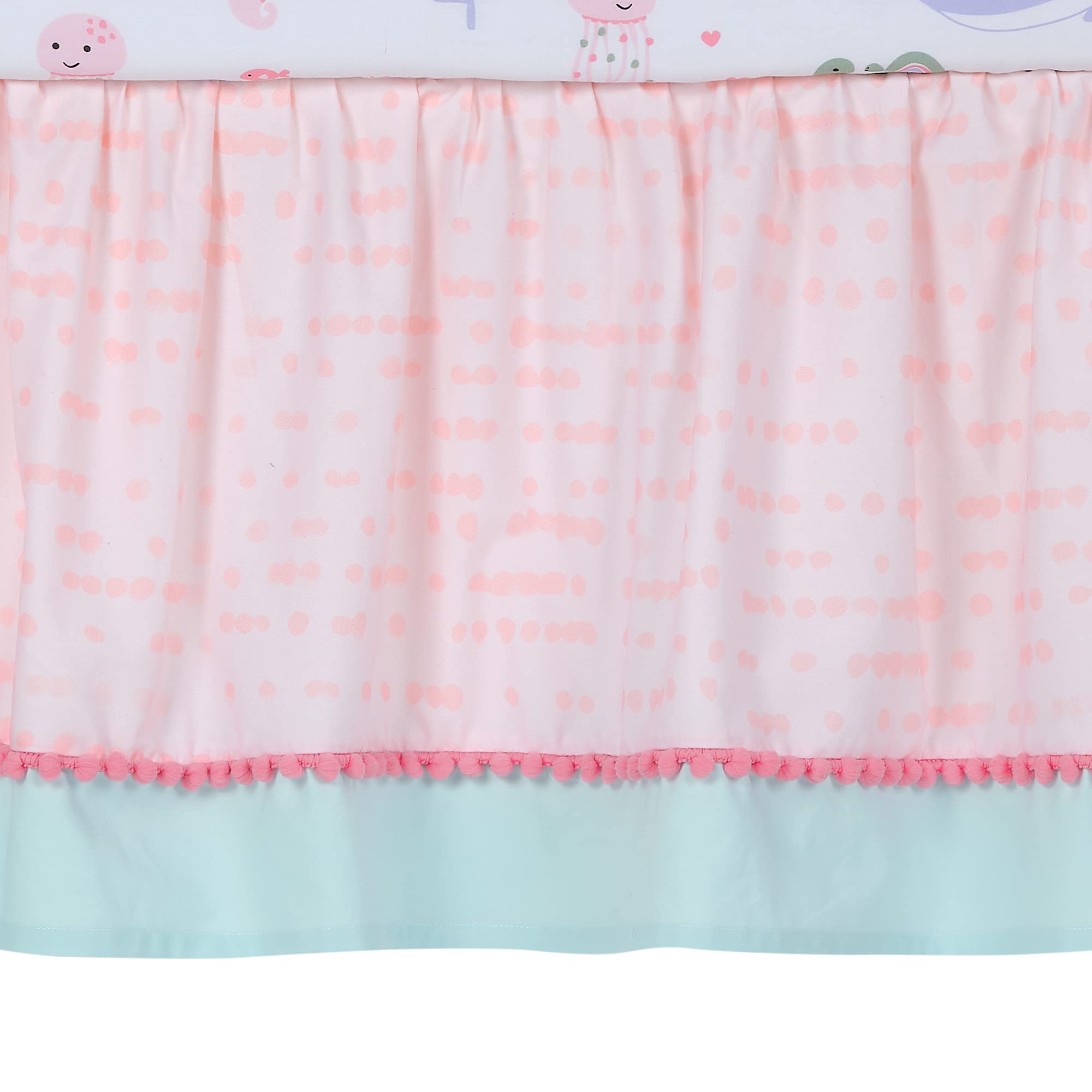 Shirred cotton blend crib skirt with pom pom detail adds the finishing touch to your childβs crib