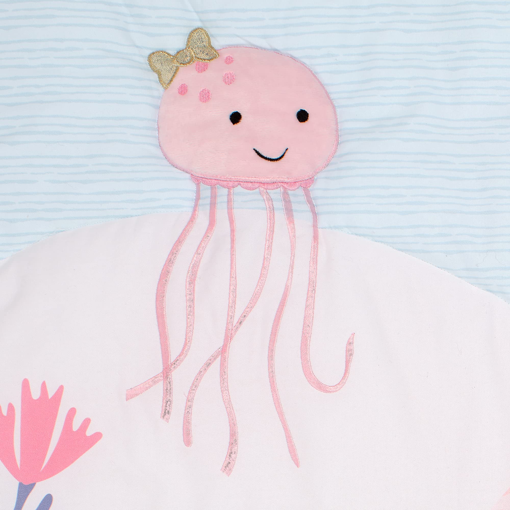 Three-piece crib bedding set includes one quilt, one breathable 100% cotton fitted crib sheet and one shirred crib skirt