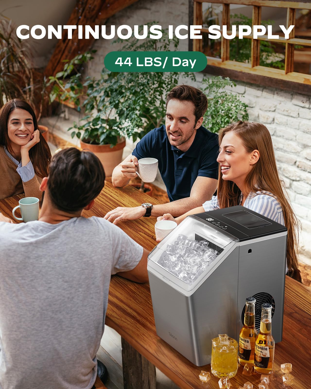 High-Speed Ice Production & Uninterrupted Supply: Get 24 cubes in 13 minutes and 44lbs/day by Silonn ice maker – enough for 10+ guests. Never run out of ice for home gatherings, BBQs, or office events. Automatic overflow prevention ensures continuous operation of this ice machine