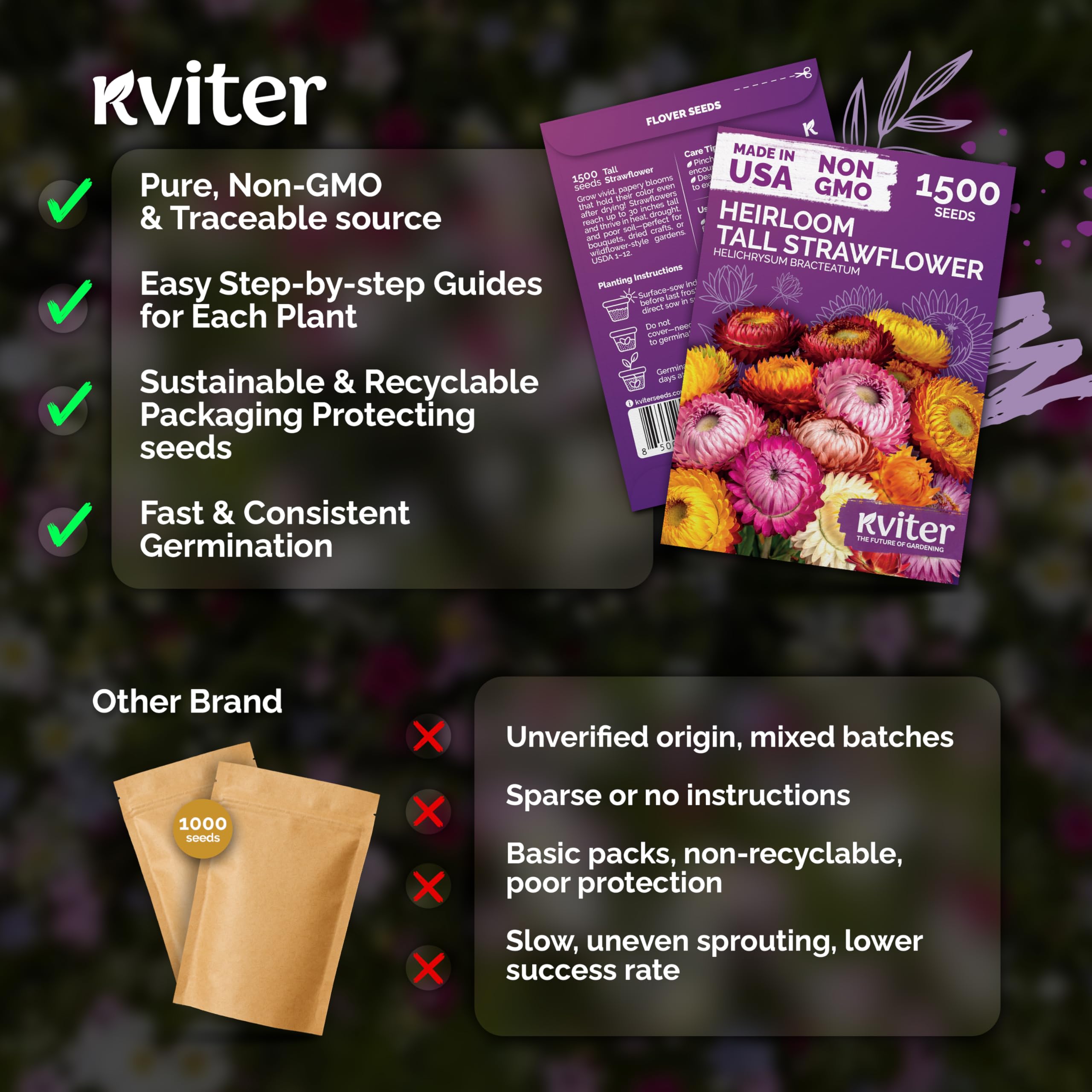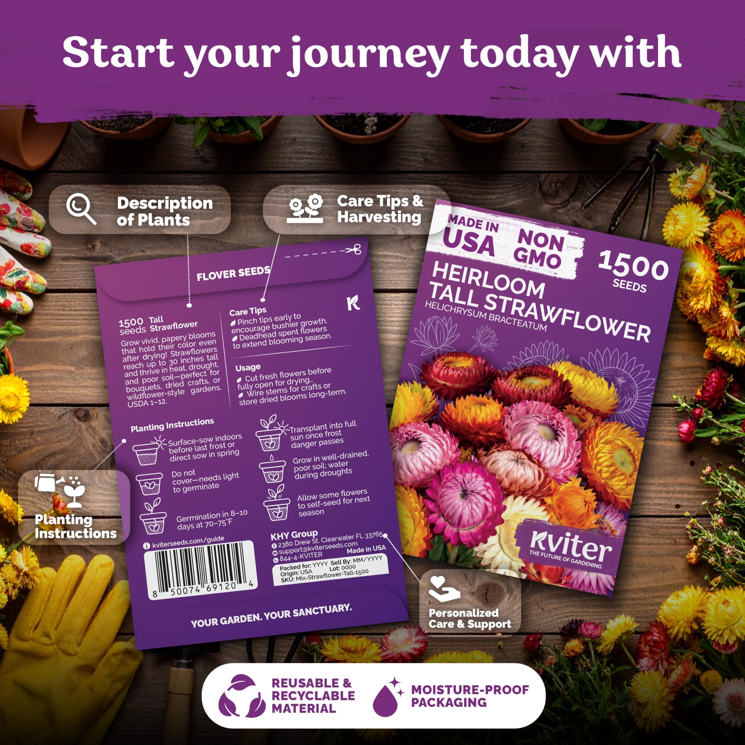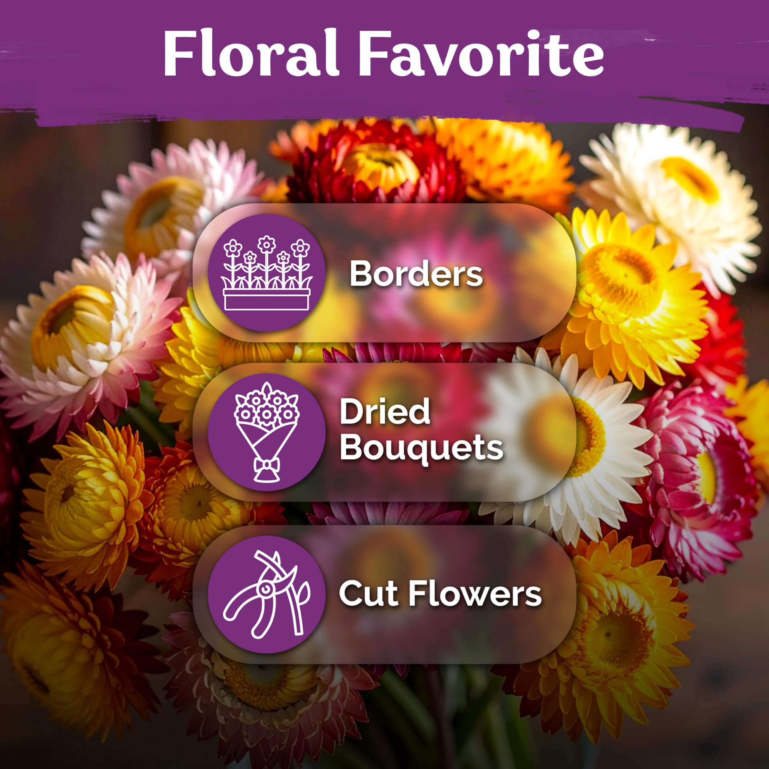 Versatile Floral Value: Petals hold color after drying, so straw flower seeds for planting create everlasting wreaths, dried strawflowers in jars, and live displays grown from tall flower seeds.
