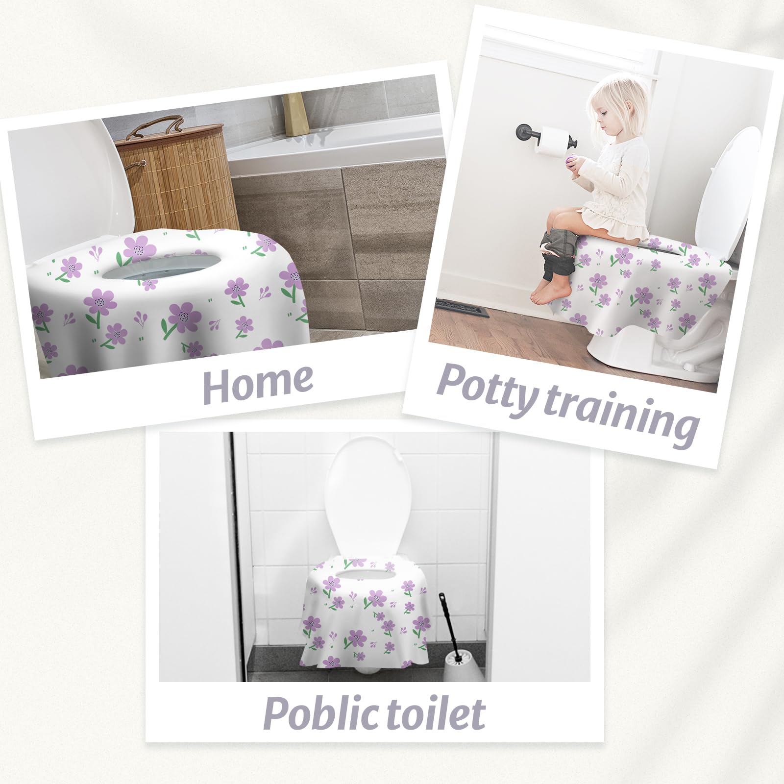 Easy To Use: Pull out one disposable toliet cover, unfold and reveal the 2 adhesive tabs, then put it on the toilet seat. So easy to use in public restrooms while potty training or just using in general to protect your child