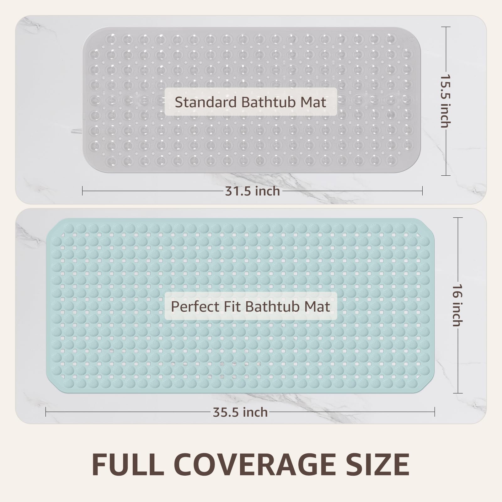 35x16 INCH Full Coverage Design: 20% larger than generic non slip bath mats, seamlessly fitting adult tubs and shower mats. No edge gaps when sitting or standing