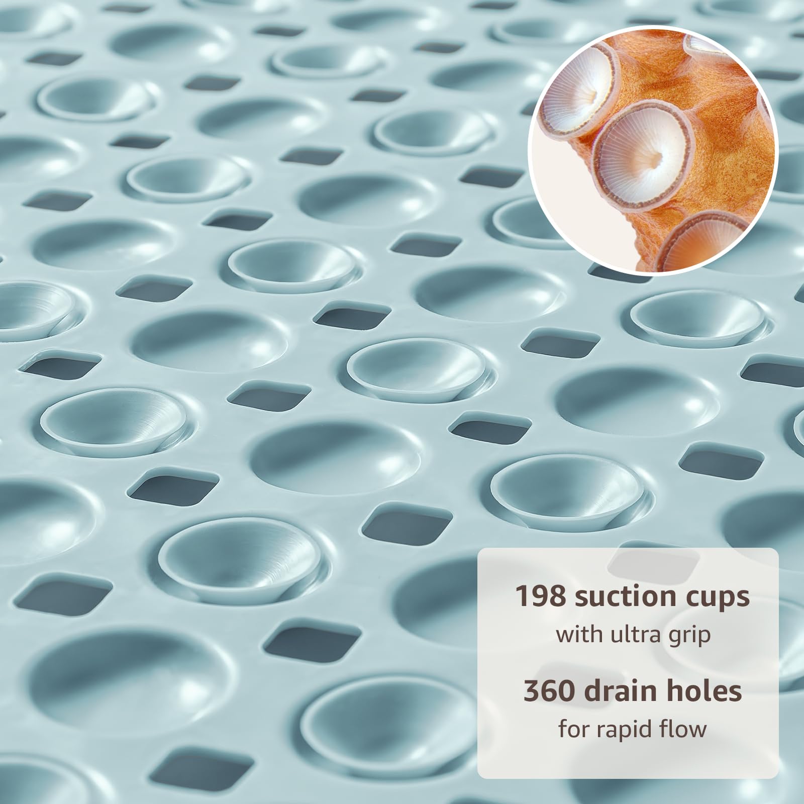 198 SUCTION CUPS Ultra Grip: 198 high-density suction cups lock this non-slip bathtub mat to tub and shower floors, eliminating slips even when wet. Ideal for shower mats for inside shower safety