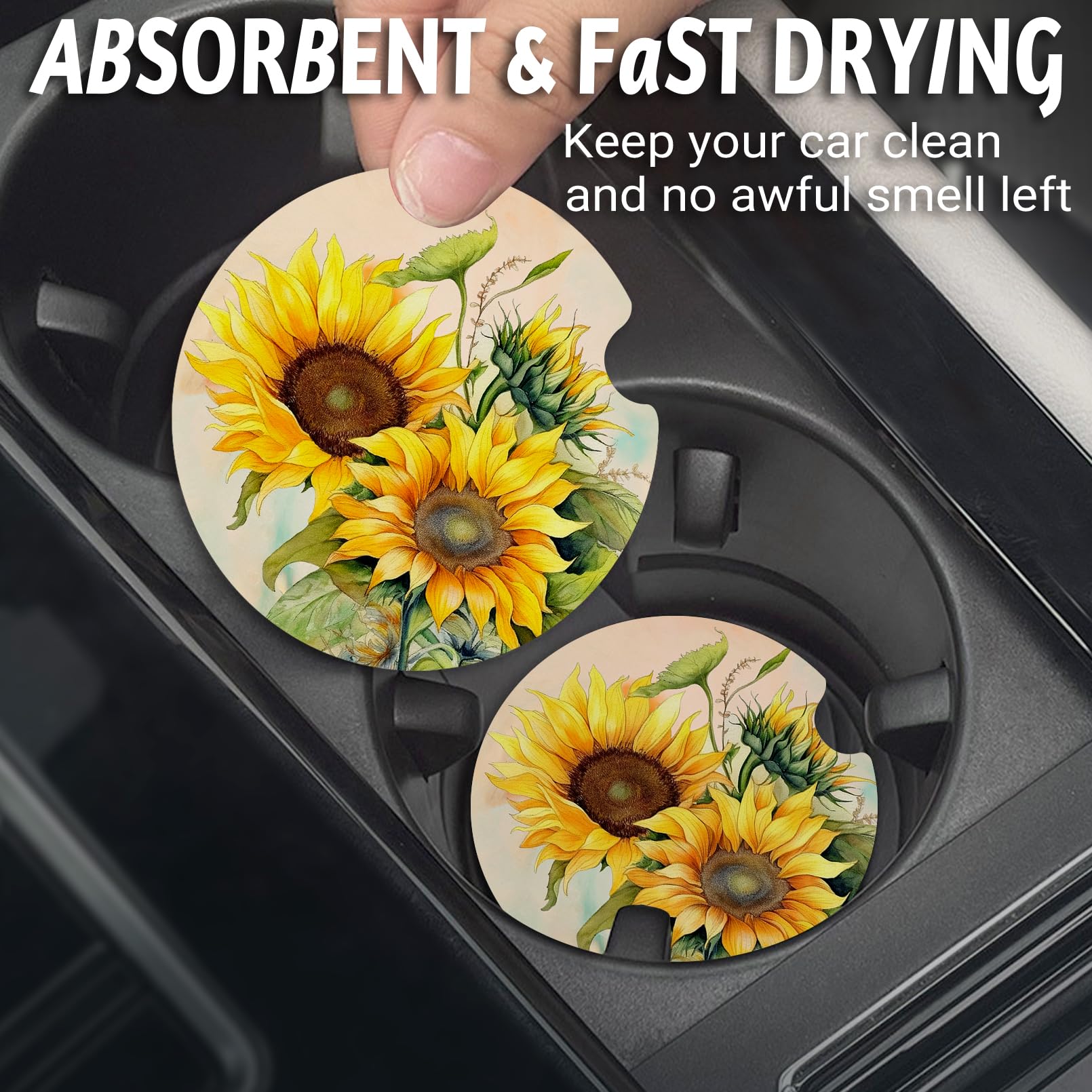 Fashion Pattern: This cup holder coasters for car features a Sunflower pattern, adding a delightful touch and a decorative element to your car's interior. They are good car accessories which can enhance interior aesthetics