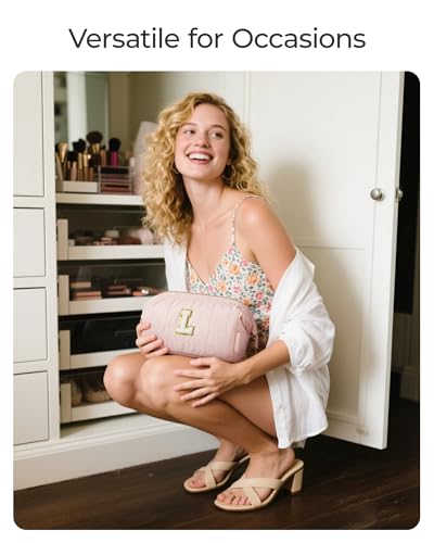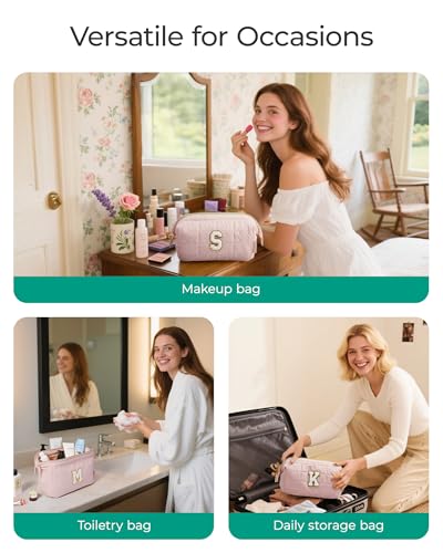 【PERFECT GIFT】- This personalized makeup bag features her shiny initials beautifully sewn on the front. It makes a perfect gift for daughters, granddaughters, girlfriends, and best friends on special occasions such as Valentine's Day, Birthdays, Christmas, or anniversaries. BAGSMART personalized makeup bag can be used as cosmetic bag, skincare organizing bag, daily handbag, toiletry bag