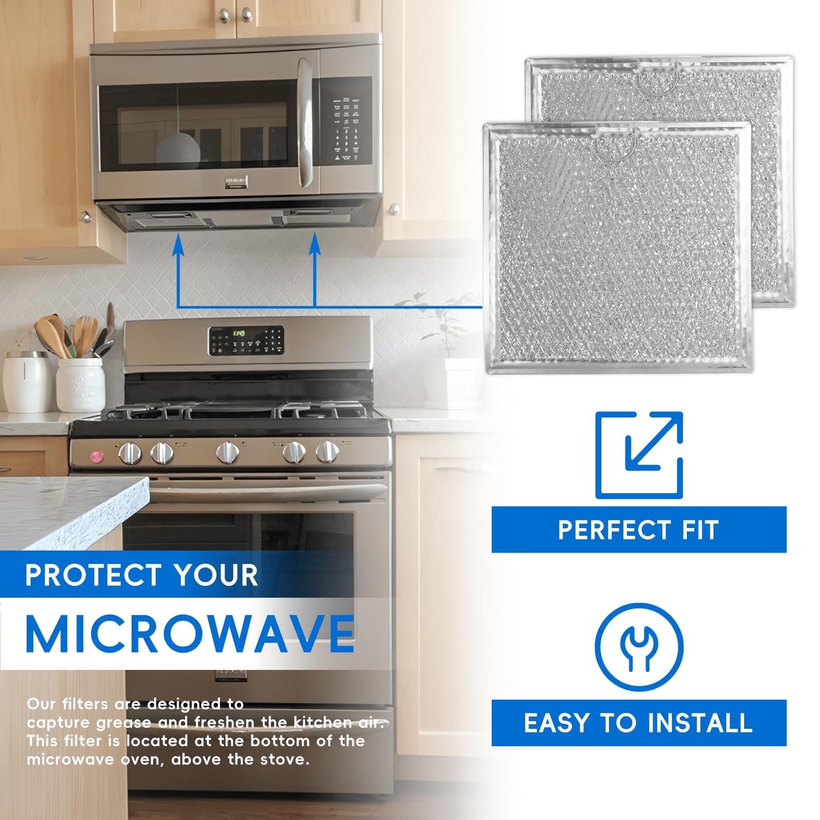 🌟【𝐈𝐧𝐬𝐭𝐫𝐮𝐜𝐭𝐢𝐨𝐧𝐬】 : This 6.76“ x 6.38” microwave filter is installed under the microwave oven, facing the top of the oven. Package includes 2 pieces of filters in a durable chipboard envelope to prevent damage to the filters in transit.