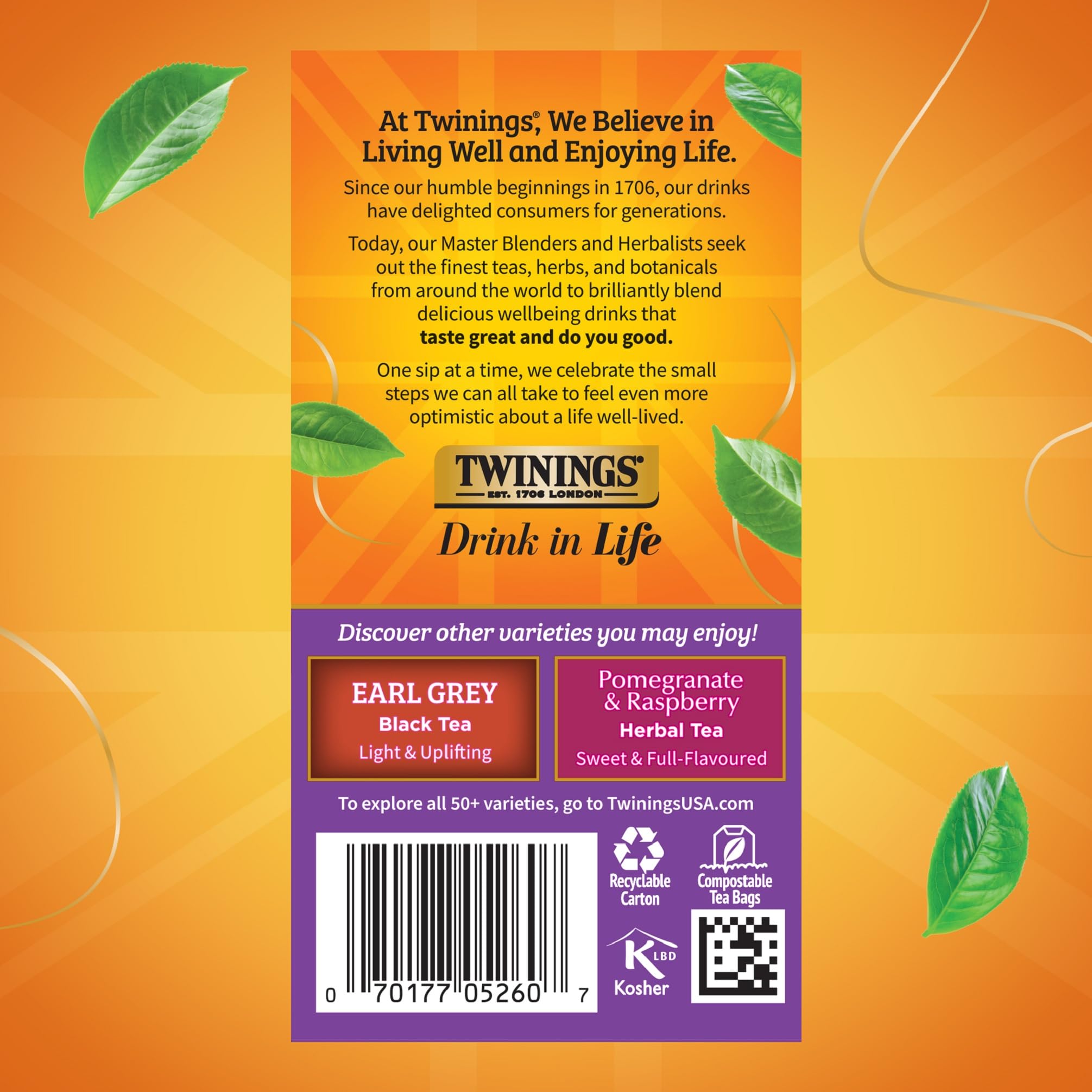 INDIVIDUALLY SEALED TEA BAGS STAY FRESH: Take your tea on the go in your purse, workout bag, backpack, school or work desk or car; Each tea bag is sealed for freshness so every cup of Twinings is the perfect cup of Twinings