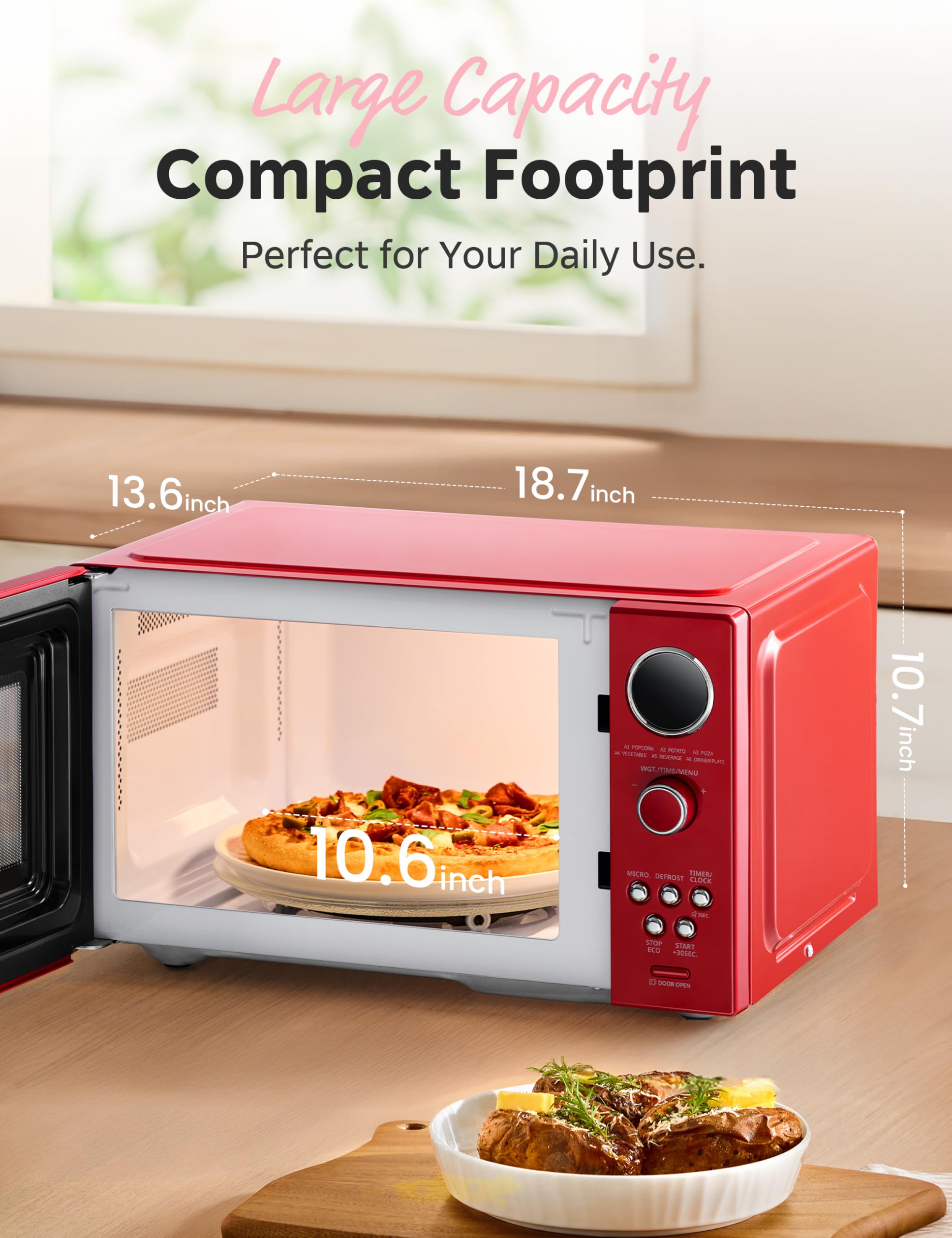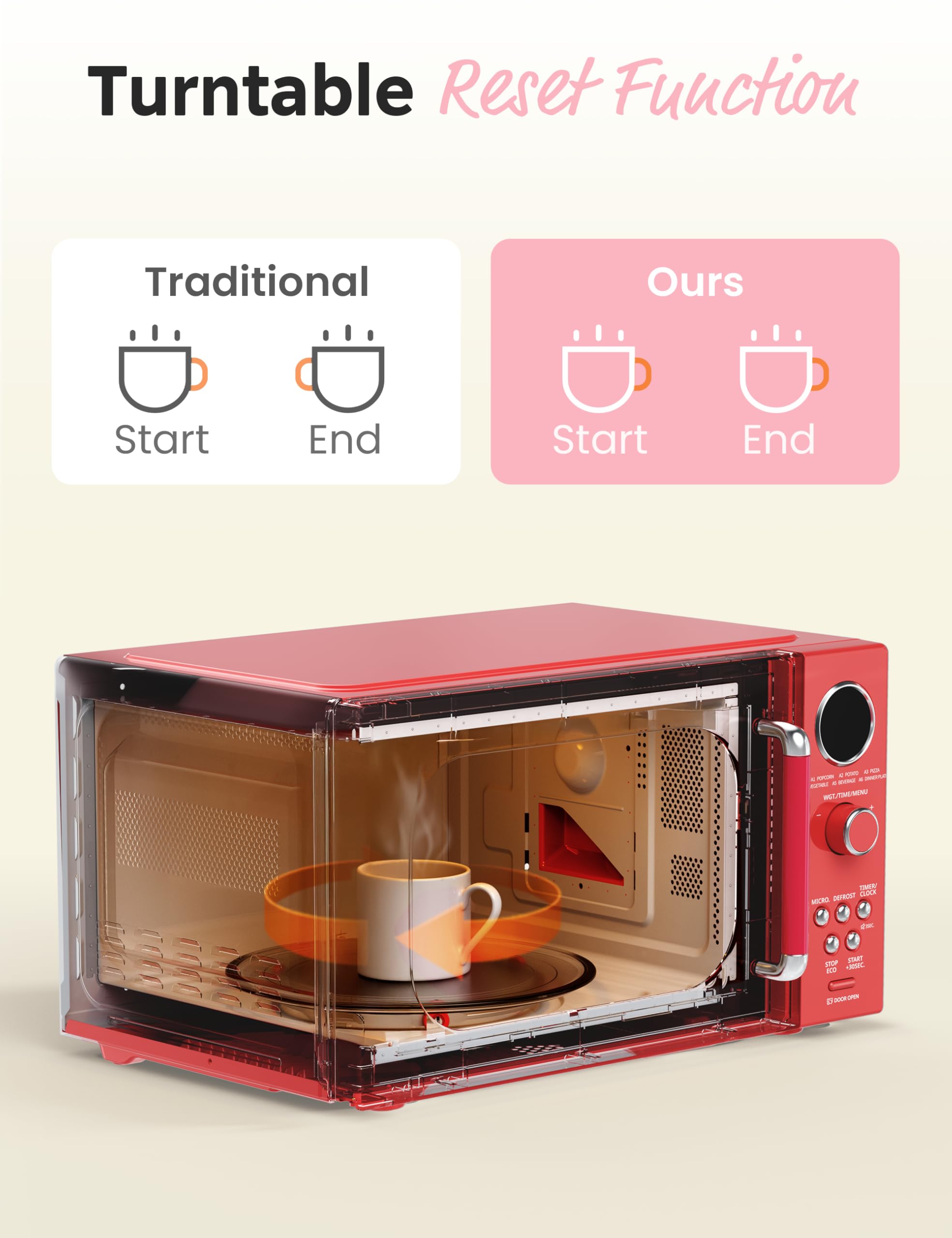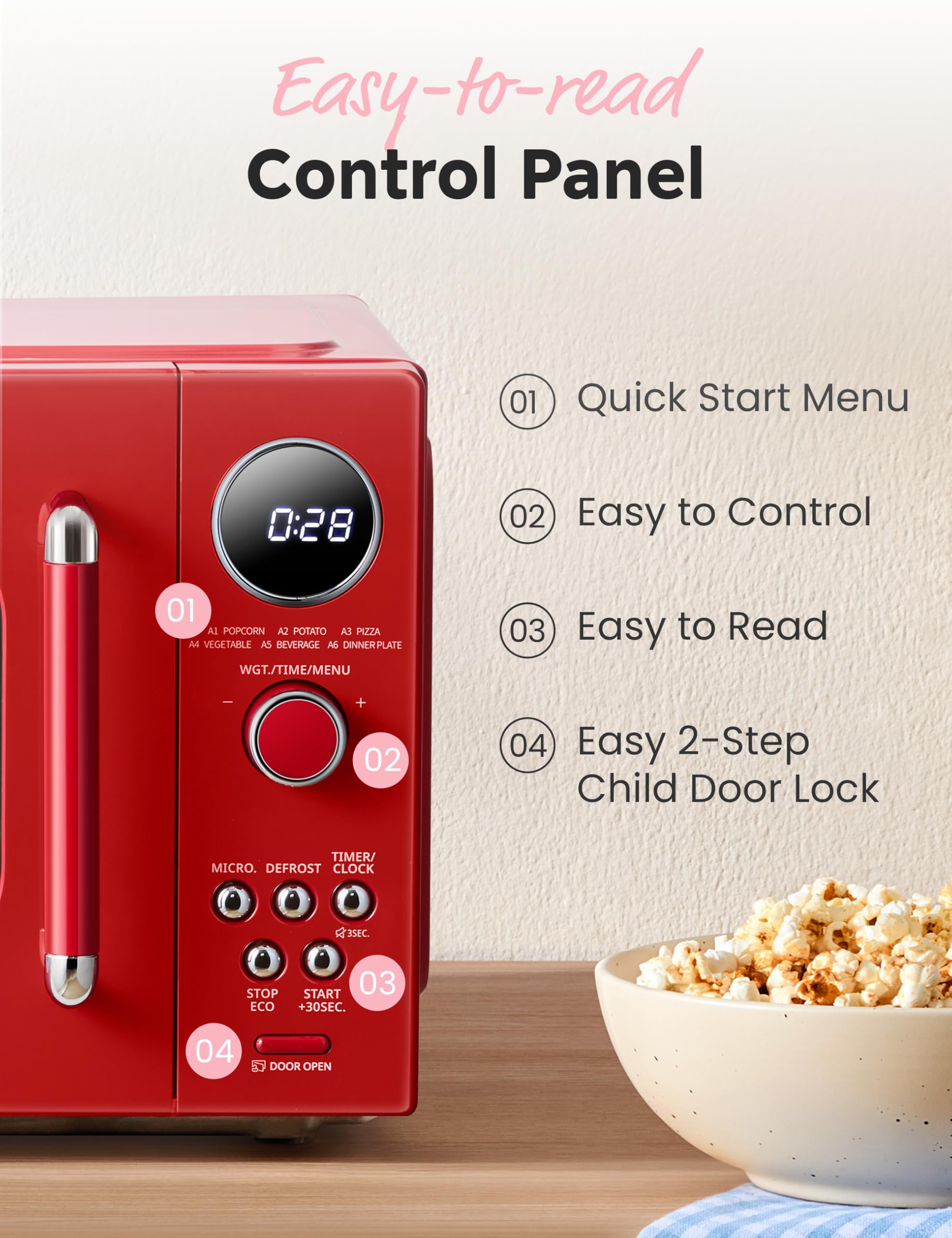 Stylish Retro Design: With compact size, this retro microwave fits all types of kitchen styles, also adds to the colour of your home. Easy-to-read control panel with LED display is suitable for all of you to use. Perfect gift for the one you love.