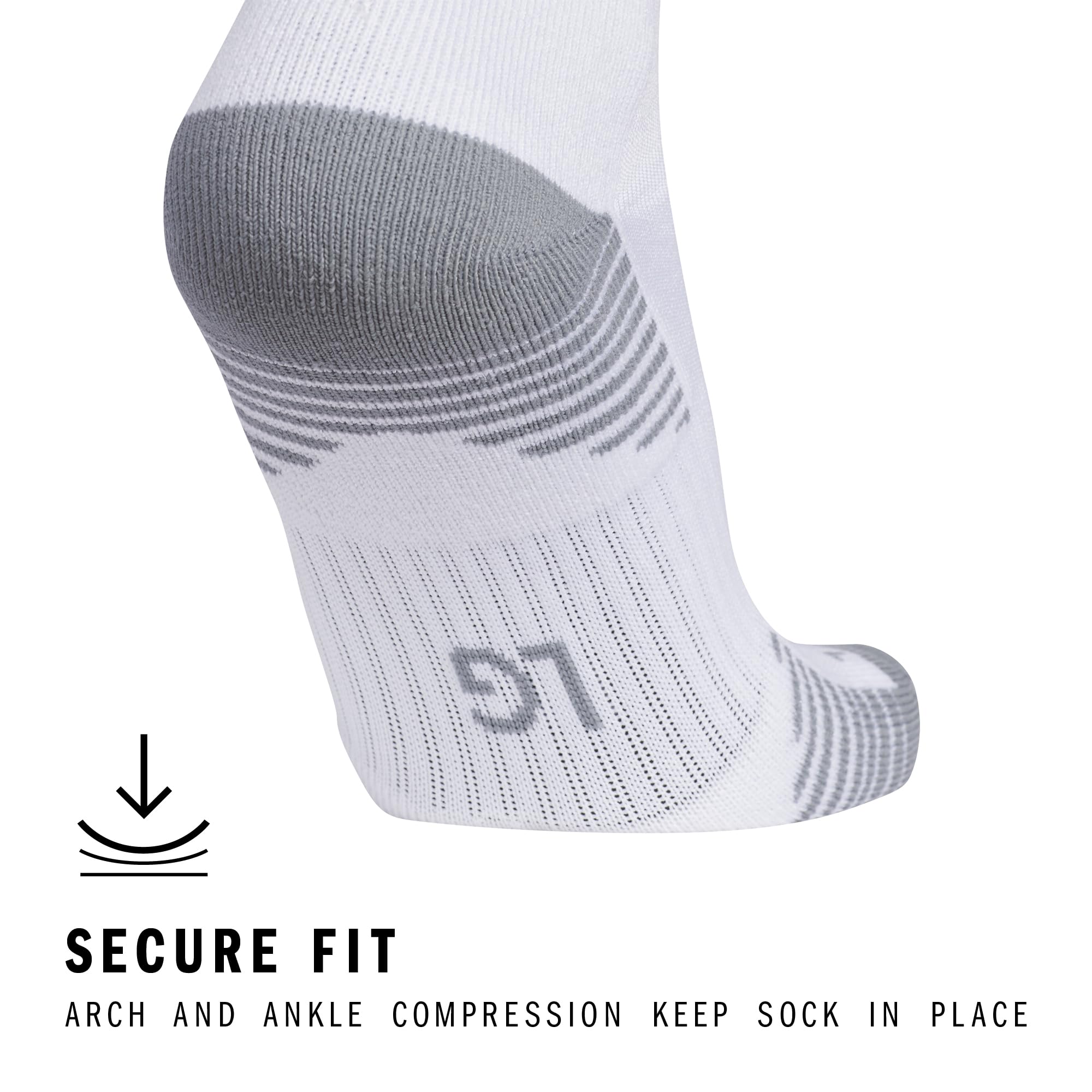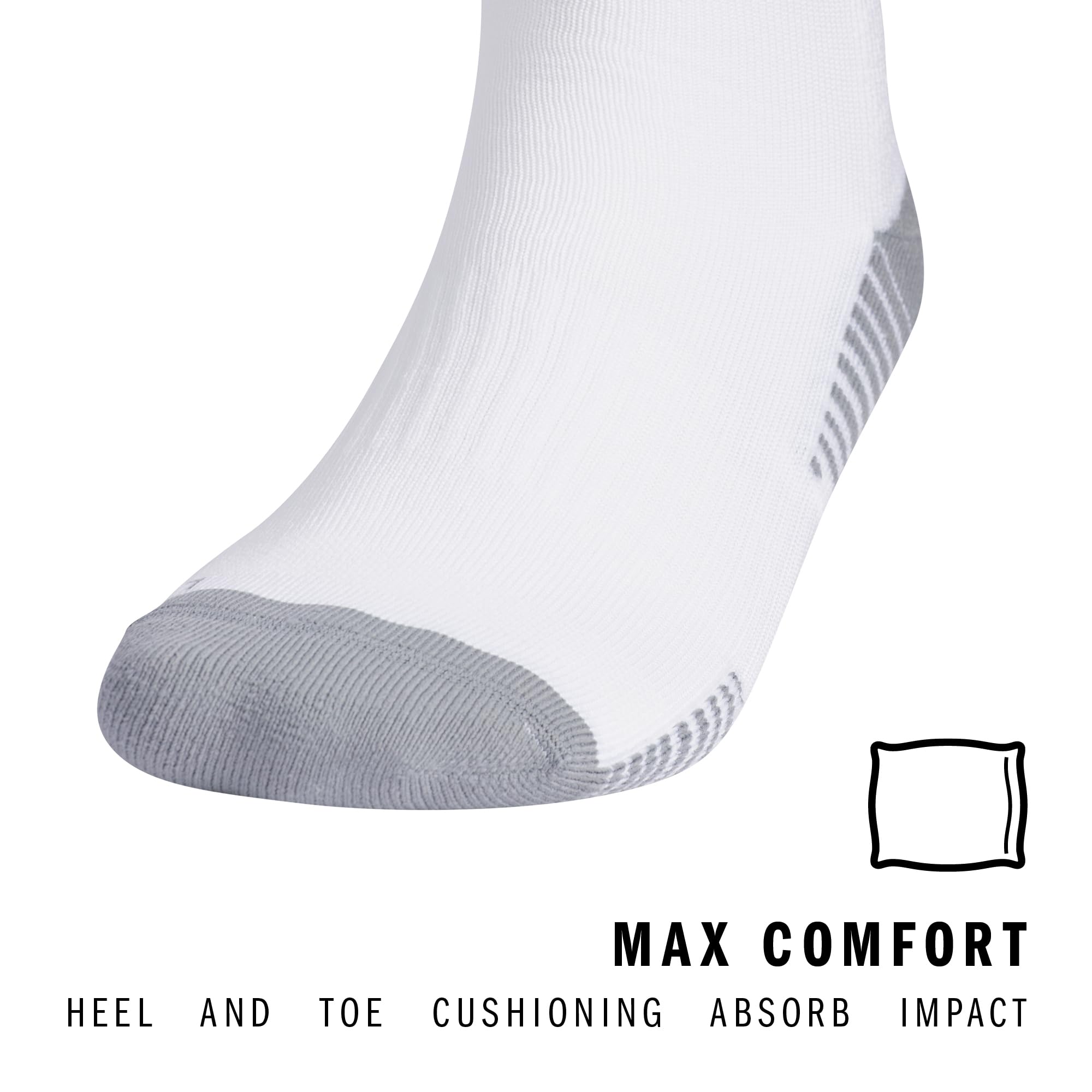Description Get ready for the game with these adidas soccer socks, designed to elevate your performance on the field. These womens and mens socks offer moisture-wicking yarn to keep your feet dry from sweat. The classic 3-Stripe finish at the welt and center front Badge of Sport logo add a touch of style that's synonymous with adidas soccer. Whether you’re in the midst of a competitive match or a casual game, cushioning at the heel and toe provides the shock absorption you need. The adidas Copa Zone Cushion 5.0 socks feature compression for a secure fit and additional support. These womens and mens compression socks include arch and ankle support, providing stability. The airy mesh and lightweight construction offer a close fit and excellent ball touch, making them ideal running socks for men or women who seek both comfort and performance. These over-the-calf socks offer the classic fit and protection you'd expect. Perfect for both casual use and high-intensity activities, these socks are a versatile addition to any athlete’s wardrobe. Experience the superior quality and functionality of adidas soccer socks.