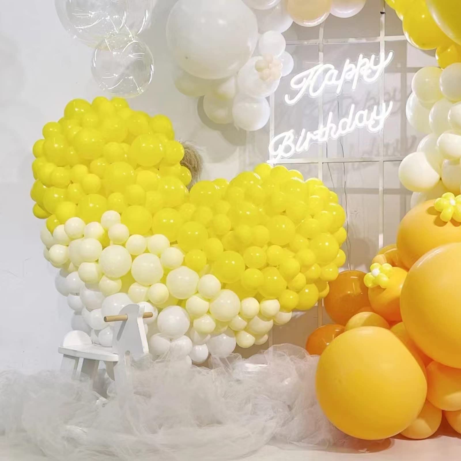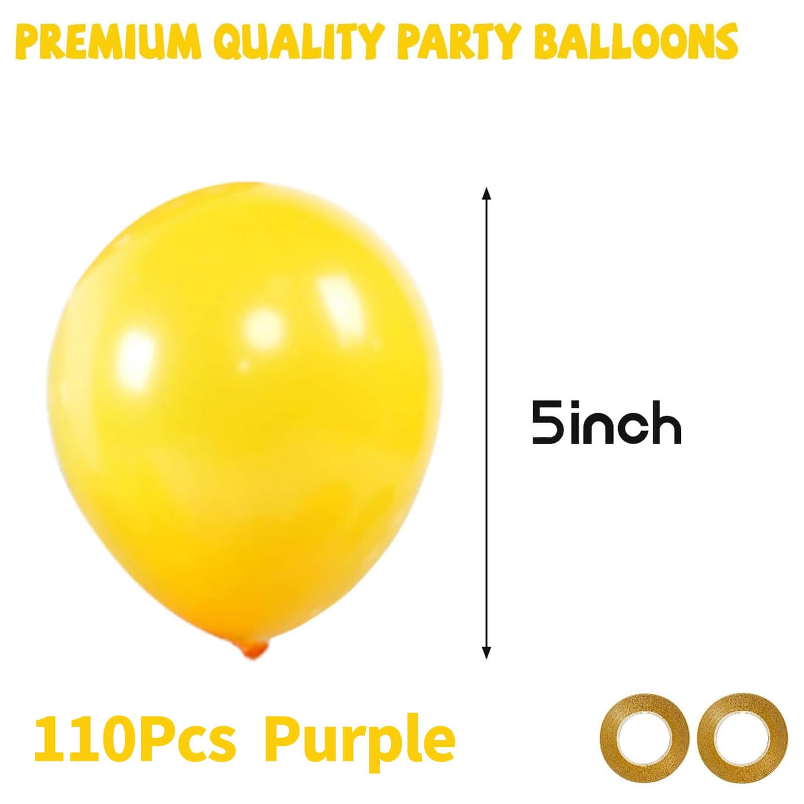 Wide application:These 5 inch yellow balloons kit is perfect for bitc.rthday parties, baby showers, bridal shower, New Year party, holiday party, Anniversary celebrations, Dances, Christmas, balloon bouquets, party games.