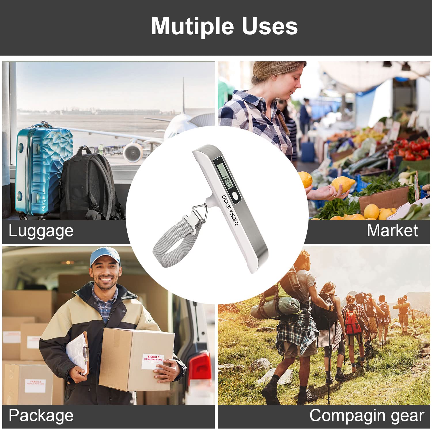 DURABLE & LIGHTWEIGHT - The Digital Baggage Scale is made of stable plastic and stainless steel. T-handle design, sturdy stainless hook, and textured nylon strap help you easily and safely to holding heavy baggage. Lightweight and portable, easy to store and carry and perfect for travelers.