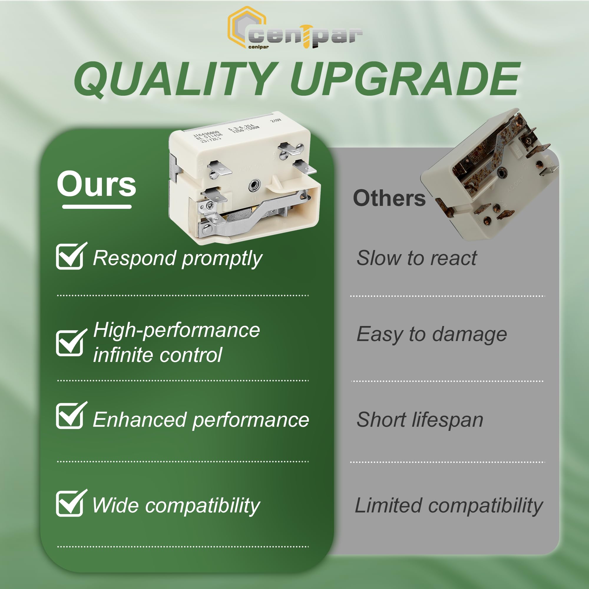 Solution & Simplified Upgrade: 316021500 Range Infinite Switch resolves heating element issues (non-operation, overheating, or unadjustable heat) by controlling surface element activation and heat regulation. Tool-free installation (less than 30 minutes), and Cenipar's 2-year QA restored appliance functionality