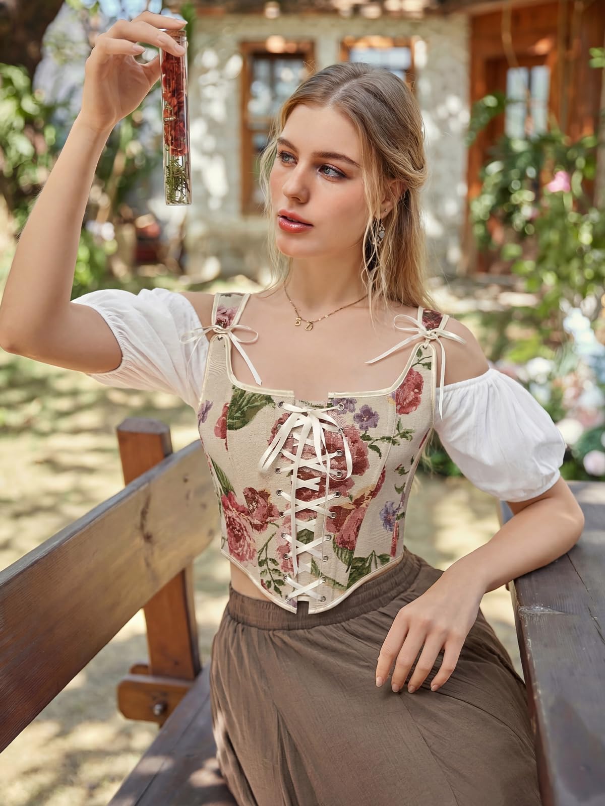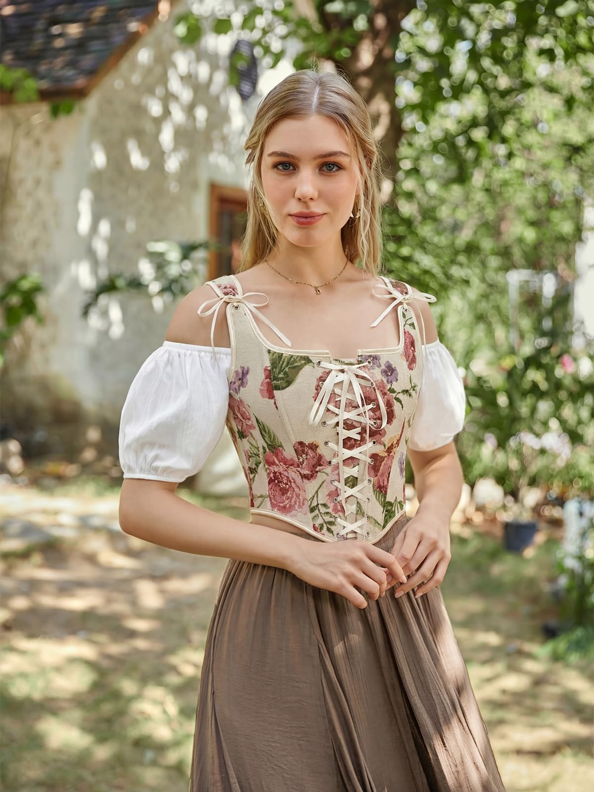 Versatile Occasion: From Renaissance fairs and medieval-themed events to pirate parties, Halloween costumes, or even bohemian weddings, this floral corset top is your go-to for memorable looks