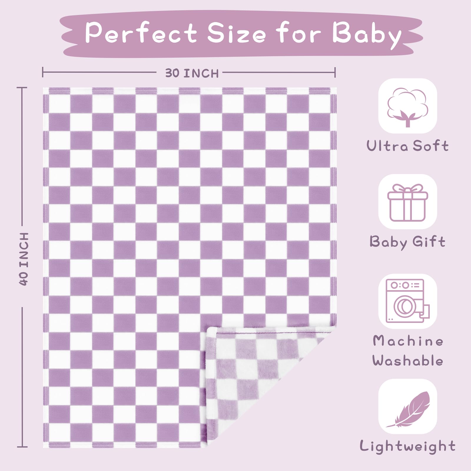 Versatile -- In addition to being used as a baby bed blanket, it can also be used for swaddling, cleaning, and nursing covers. Its lightweight design also makes it a great choice for car baby seat cover, travel blanket, play mat and pet blanket. Perfect size, easy to pack and carry.