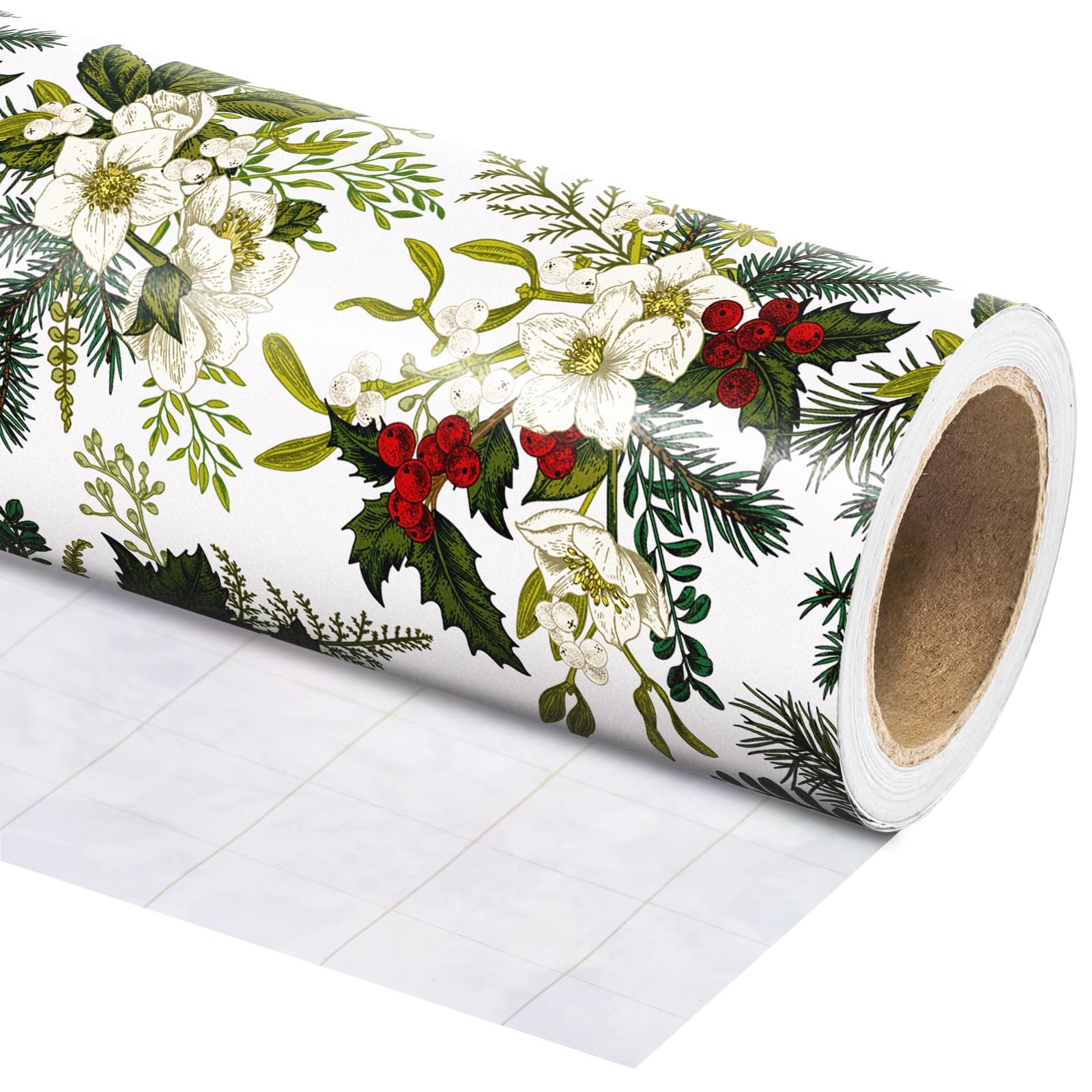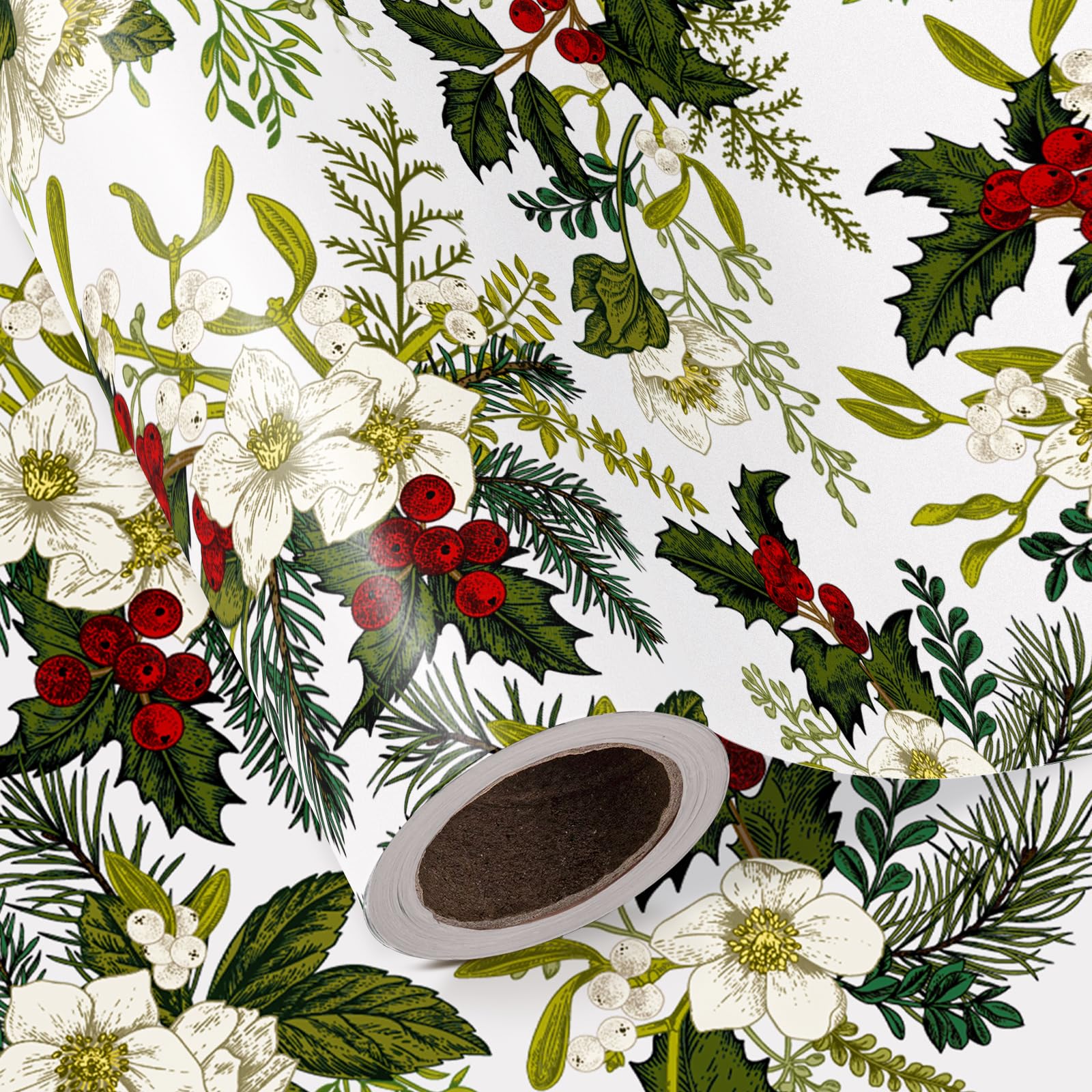 Perfect Size: Each roll measures 17 inches wide x 16.5 feet long, which provides you with a total of 23.25 square feet of paper. It's perfect for any small or medium - sized gift and is also very convenient to store. Christmas Design: White flowers, rich green leaves, and red berries printed on beige wrapping paper, creating a elegant and warm festive atmosphere. It will make your gift - wrapping more textured, stylish, yet special. Premium Quality: Created with high-quality paper materials, thick and not easily tear or rip. Item came with shrink film to prevent wrapping paper from scratches and reduce dust. Use All Winter: Whether it's the joyous celebration of Christmas or the holiday season filled with family gatherings and gift - giving traditions, it is an outstanding choice. It is also great for decorating the Christmas tree. Wrap Your Love for Christmas: You can wrap your love with our special Christmas wrapping paper, adding a splash of color to all of your gifts. Your family, children, and friends will feel your sincere Christmas wishes this holiday season. Quality Customer Service: Any question about products or orders, please feel free to contact the customer service, we will try our best to solve the problem.