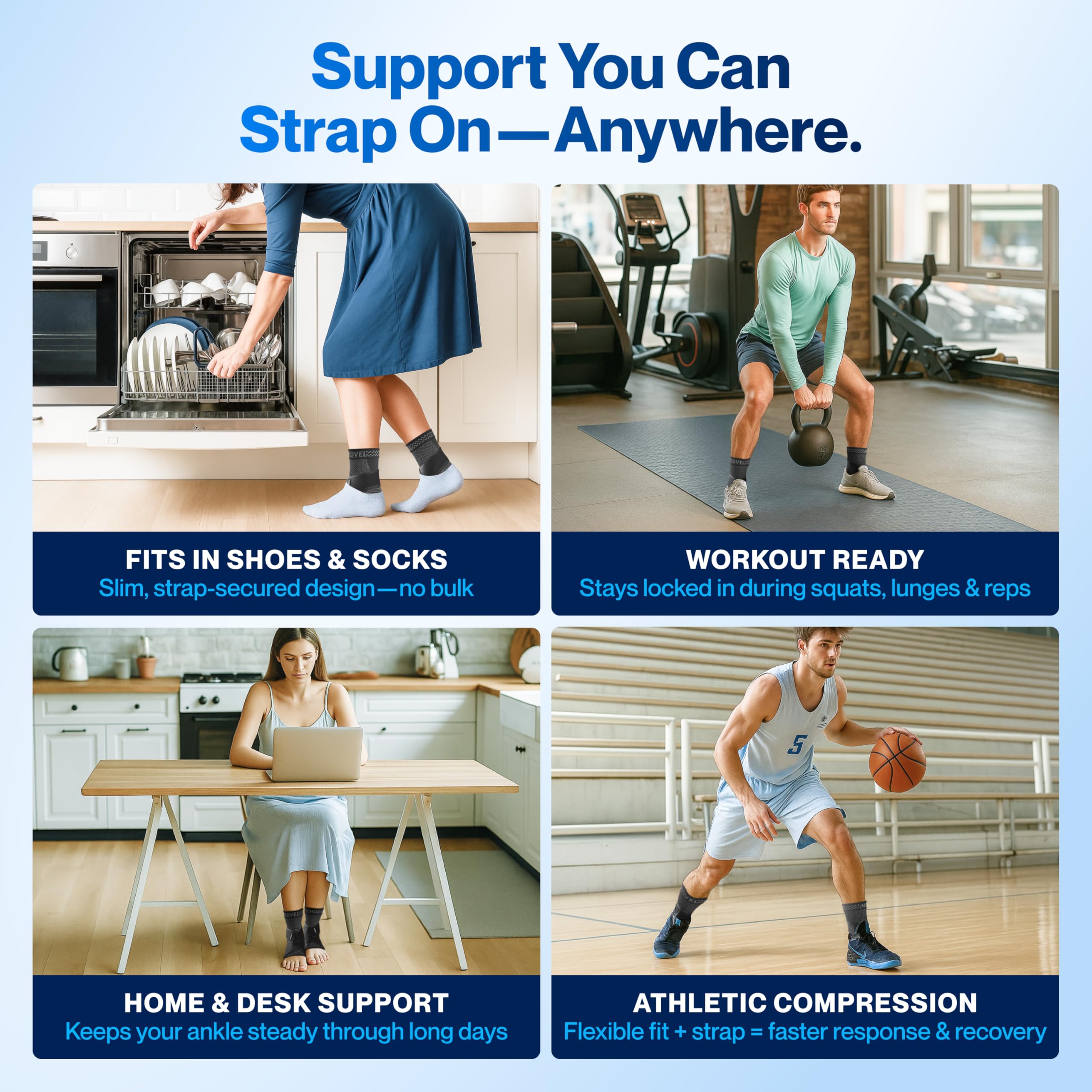 Faster Pain Relief & Recovery – Speed up recovery from sprained ankles, plantar fasciitis, Achilles tendonitis, and swelling with our ankle support sleeve featuring advanced Strapless Compression Tech for 2X faster relief without restricting movement.