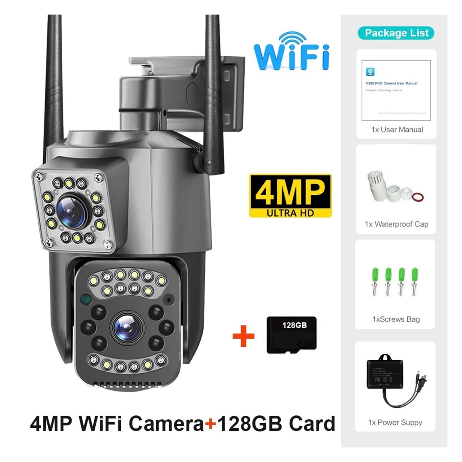 【Two-way voice + multiple storage, practical and reassuring】: Built-in microphone and speaker, allowing for clear and smooth remote conversations for communication or warnings; supports 128G TF card local storage and cloud storage, enabling real-time playback of videos and ensuring data security.