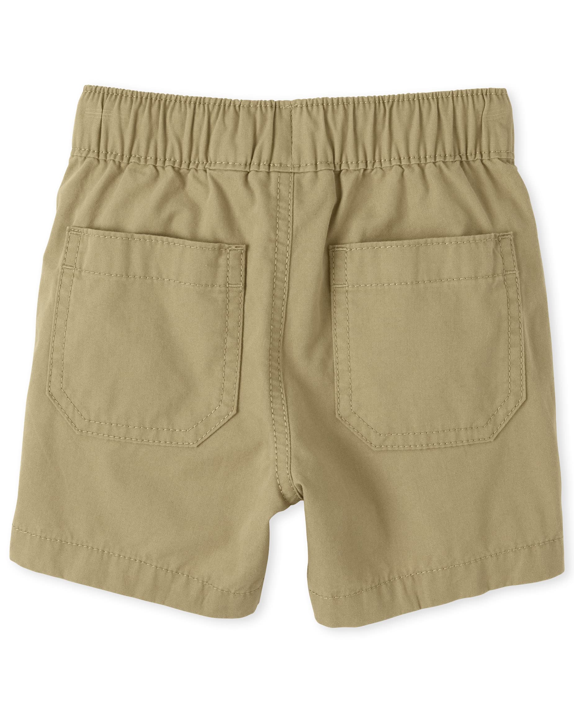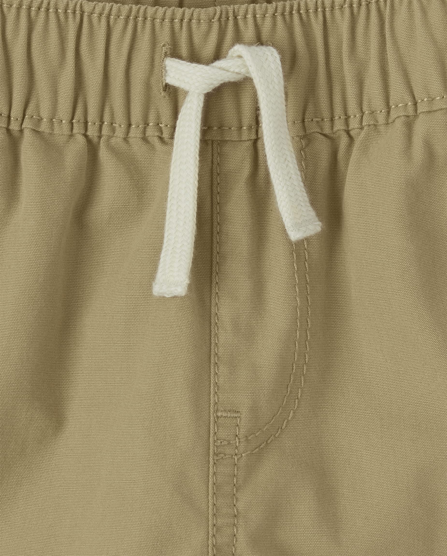 Styled with a pull-on elastic waist, drawstring, and side slant and back patch pockets