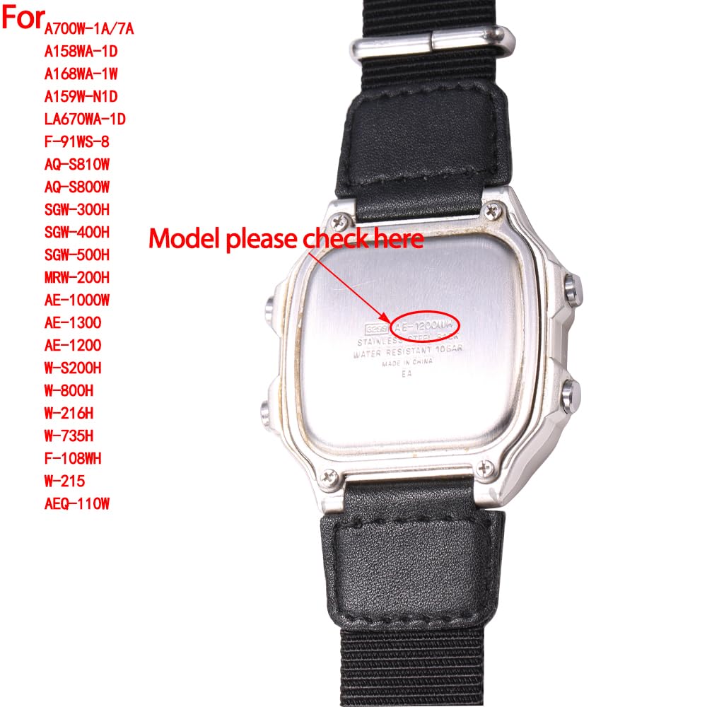 Suitable for: CASIO A700W-1A/7A,A158WA-1D,A168WA-1W,A159W-N1D,LA670WA-1D,F-91WS-8,AQ-S810W,AQ-S800W,SGW-300H,SGW-400H,SGW-500H,MRW-200H,AE-1000W,AE-1300,AE-1200,W-S200H, W-800H,W-216H,W-735H,F-108WH,W-215,AEQ-110W,except for the compatible models mentioned above, no other models are available