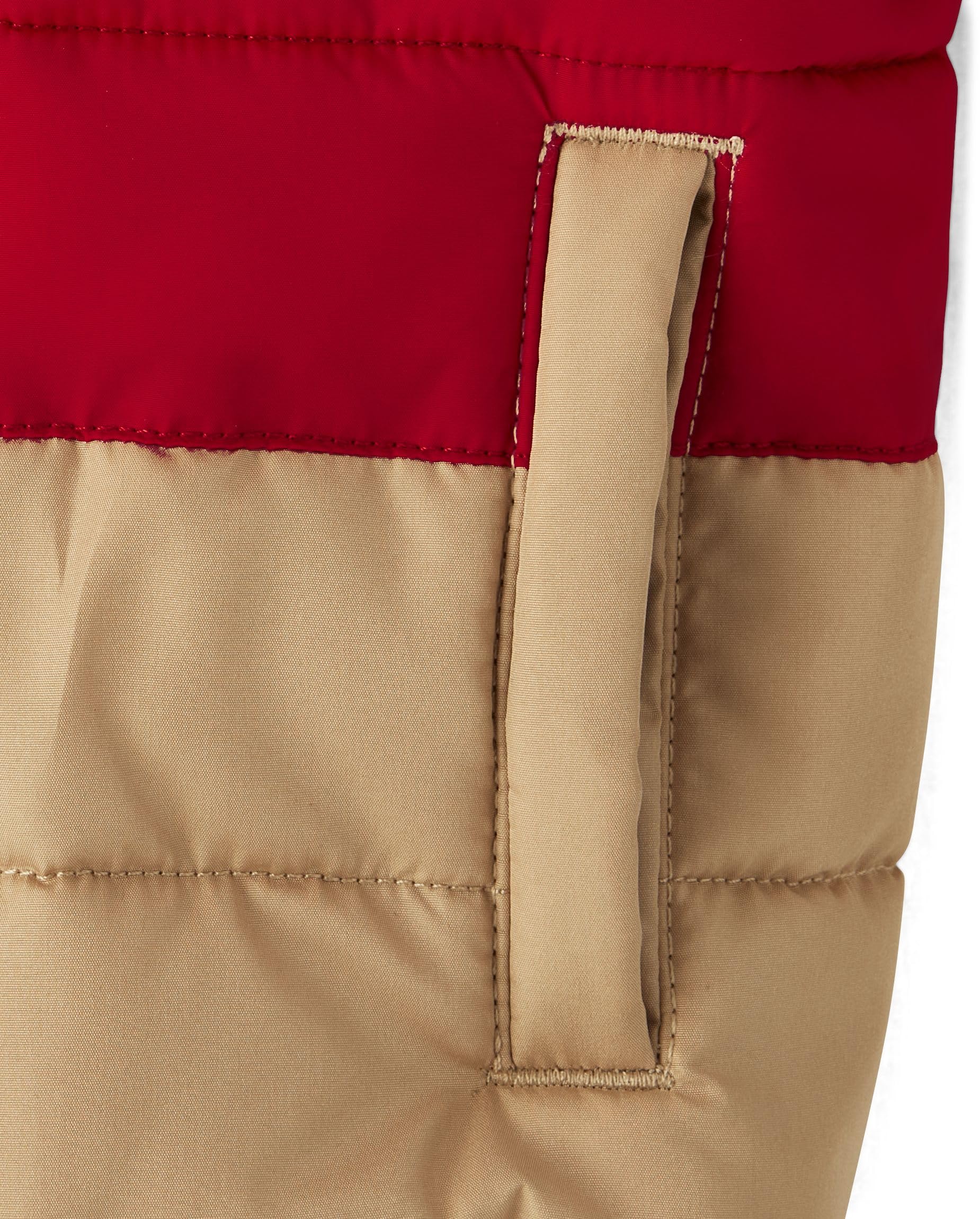 FABRICATION: 100% water-resistant polyester pongee body, 100% polyester taffeta lining, 100% side-brushed anti-pill polyester microfleece hood lining, contains 100% recycled polyester fill, imported