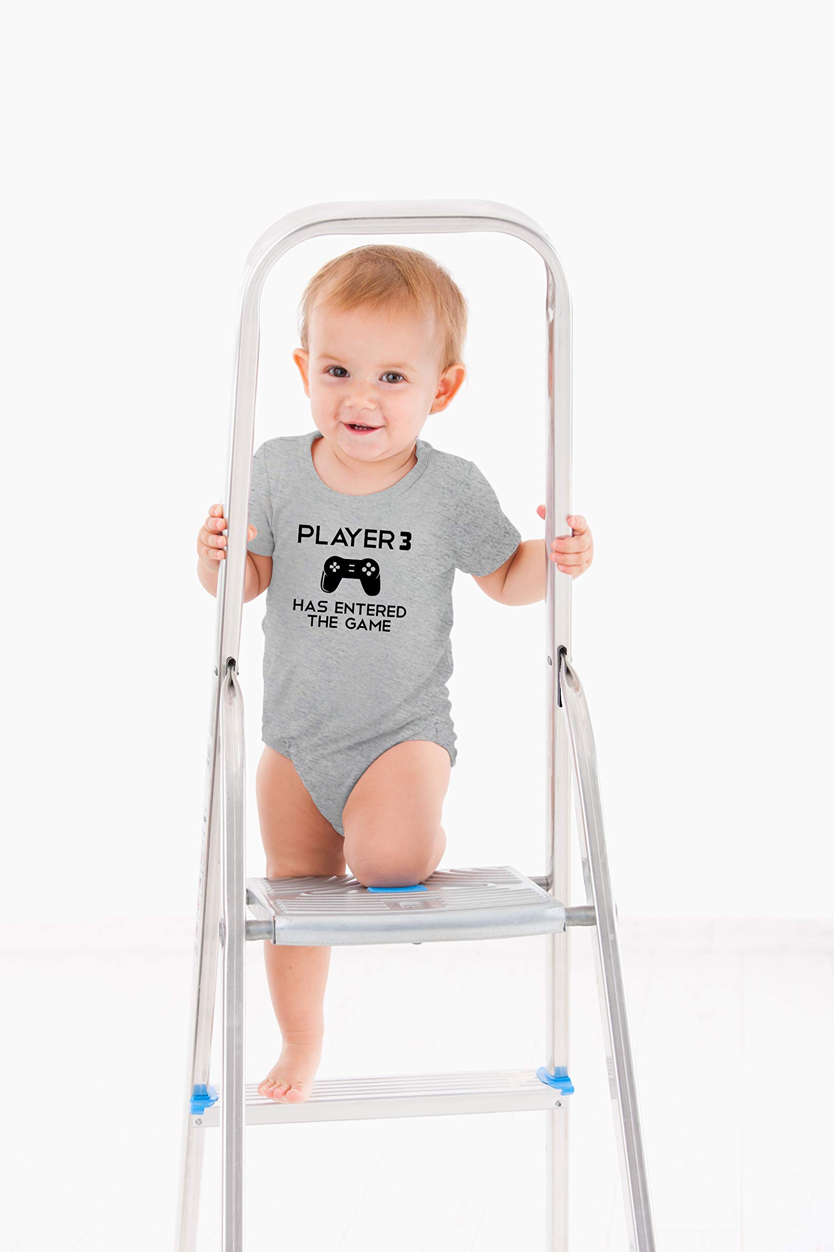 Unique and Original Gift Idea: Elevate your gift-giving with this cute and adorable Player 3 Has Entered The Game one-piece infant bodysuit. It's the perfect present for baby showers, baby birthdays, gender reveals, due dates, Christmas, New Year, and for mom-to-be or Mother's Day. This charming baby creeper makes an excellent gift from a grandpa, grandma, aunt, uncle, niece or nephew. Bring joy and laughter with this thoughtful gift for the newest addition to the family.