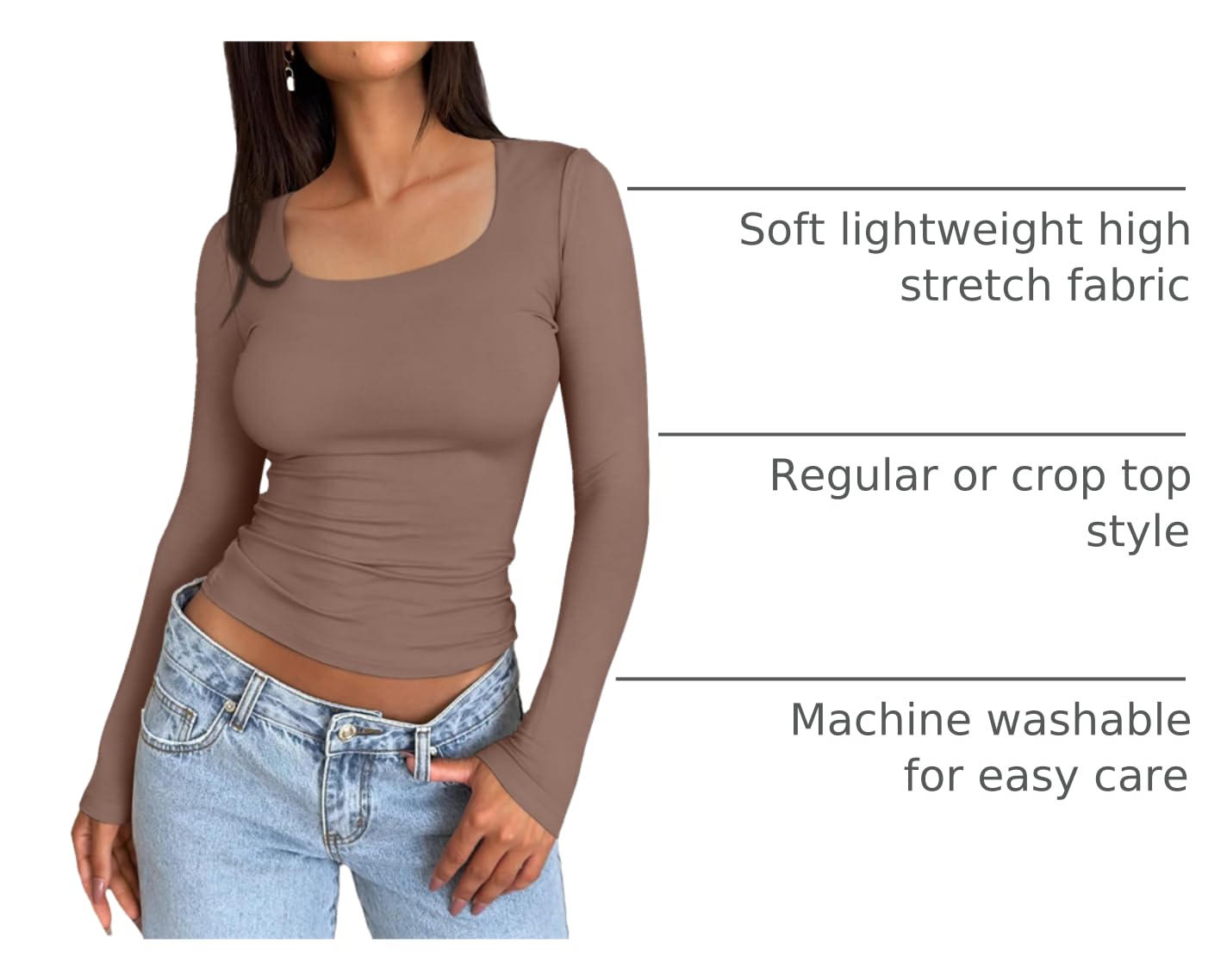 Soft Material: Crafted from a blend of 88% polyester and 12% spandex, this long-sleeve top is lightweight, ultra-soft, and highly stretchable. It offers a second-skin feel, making it an ideal layering piece or standalone top