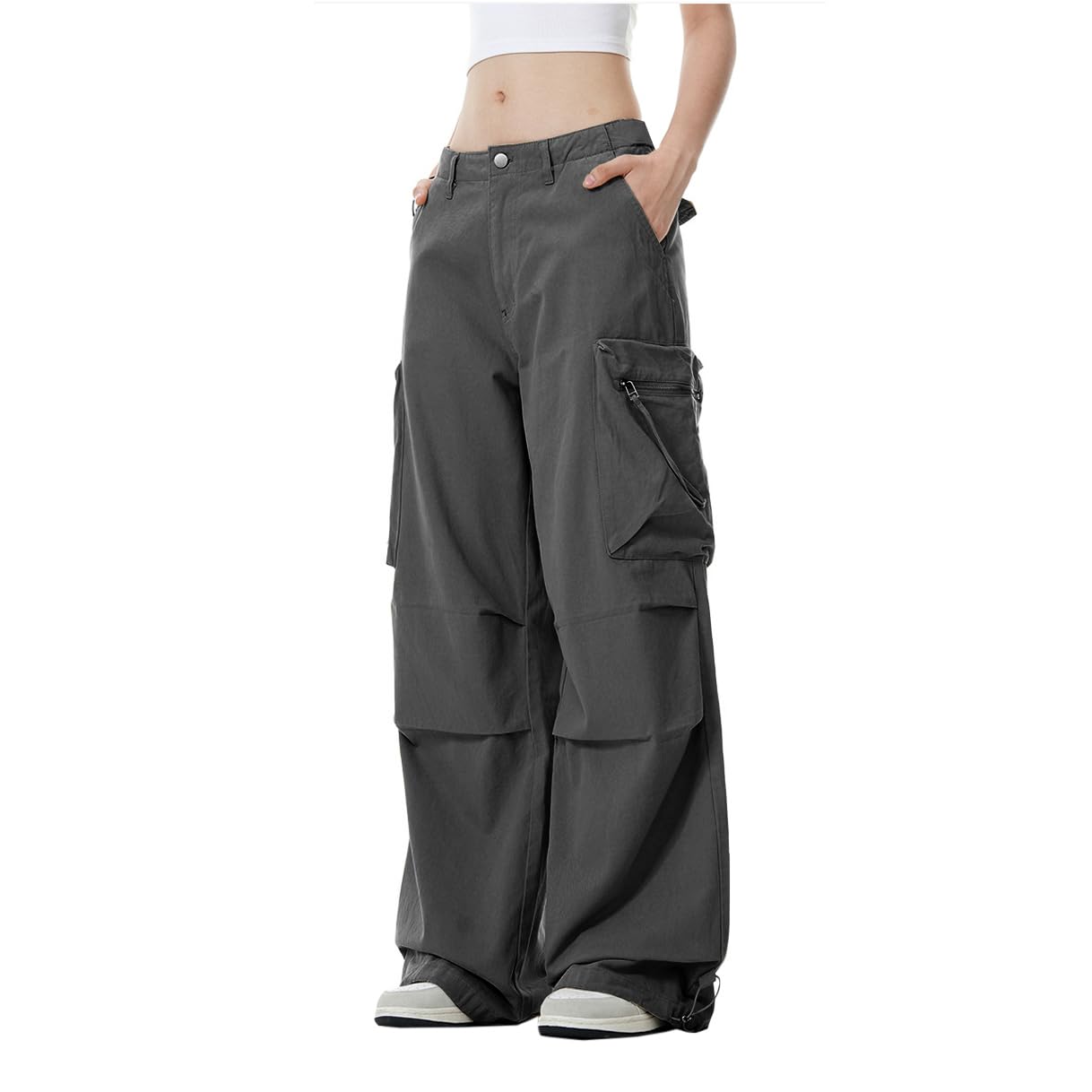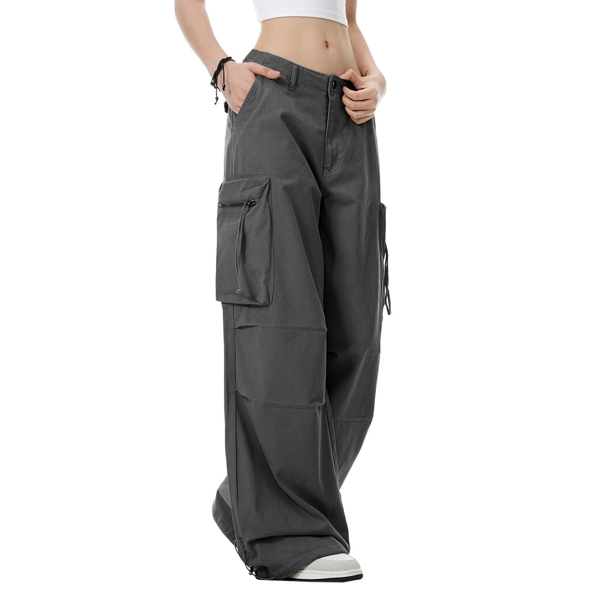 Features:Our womens parachute pants design with stretch elastic waist,solid color, Y2K style,hippie outfits,zipper and button closure,streetwear pockets for large storage capacity.The womens baggy joggers make you look very energetic and fashion,adding a casual and versatile touch to your outfit.Ideal for casual or sporty.