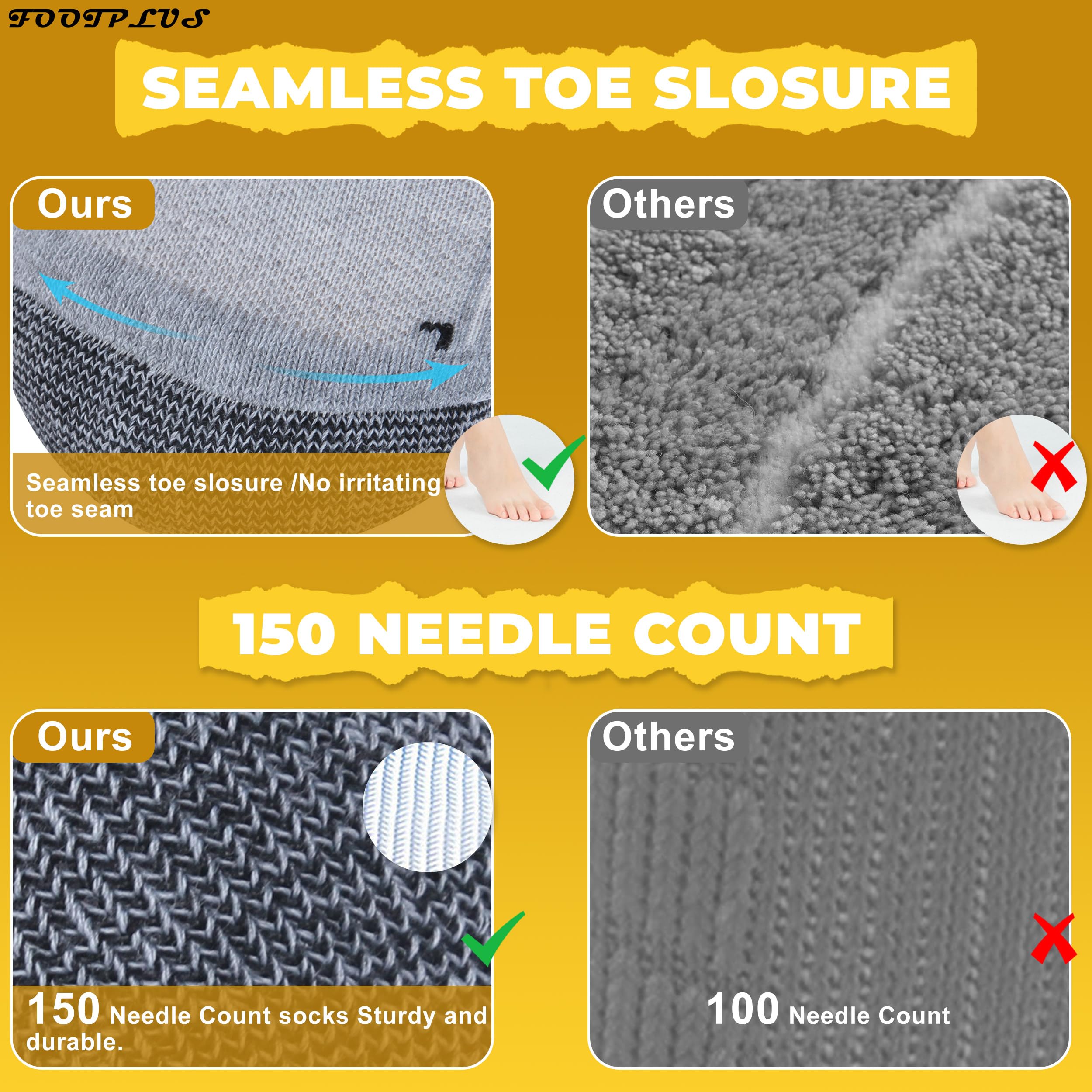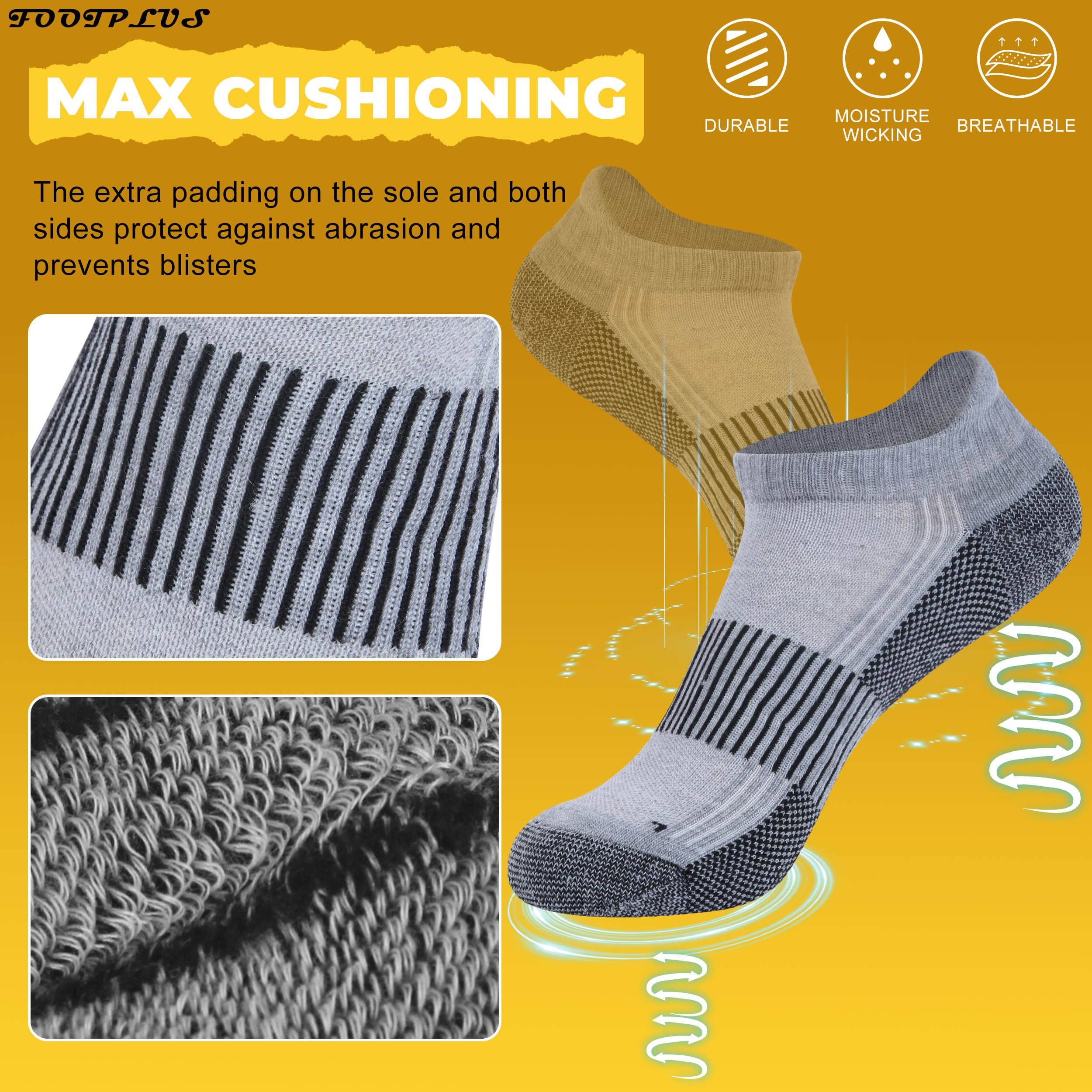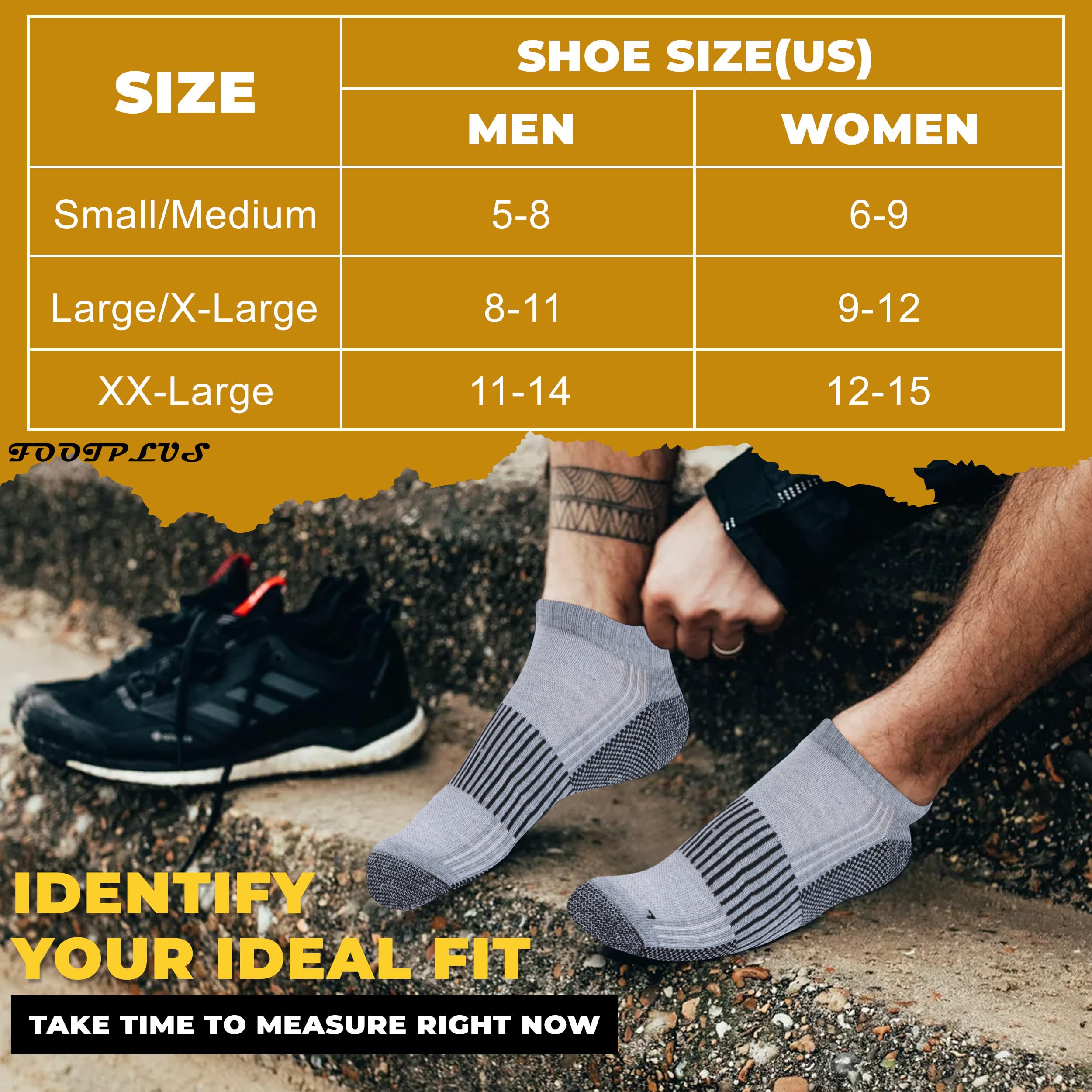 PREMIUM COMFORT FIT- The cushioned sole gives FOOTPLUS performance running socks a soft feel. The spandex arch& ankle compression provides extra protection. The hand-lined seamless toe ensures protection. The heel tab prevents the socks from slipping down. Foot loop will cover the foot completely to increase double protection from wounds caused by the excessive friction and shoes