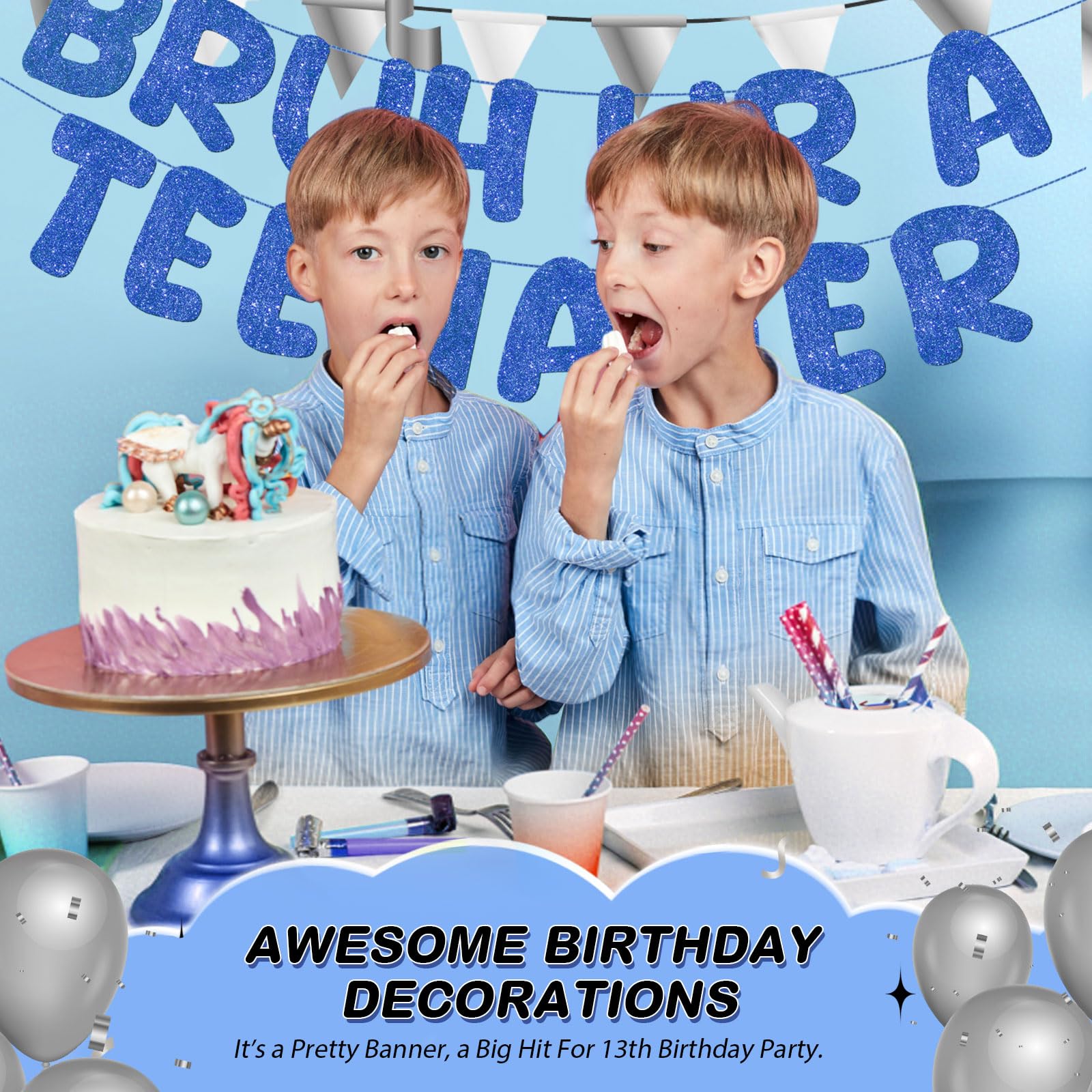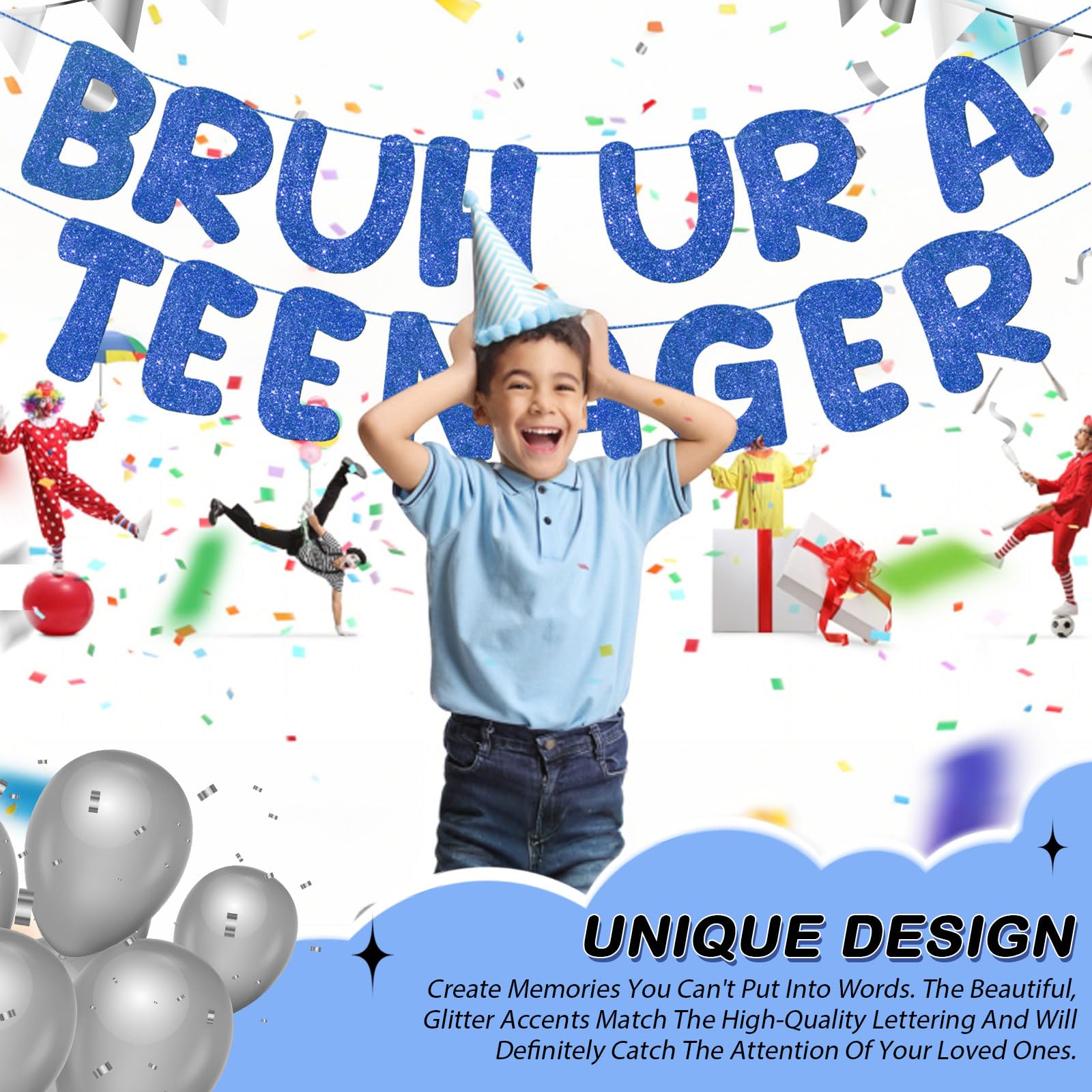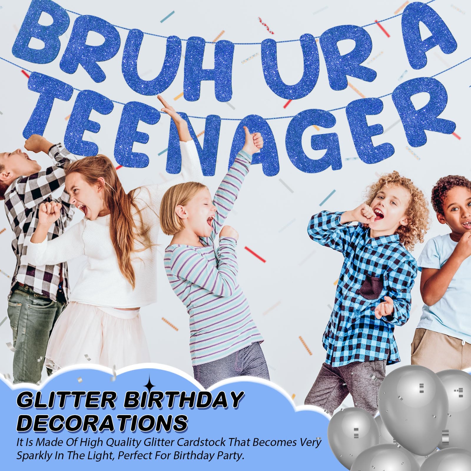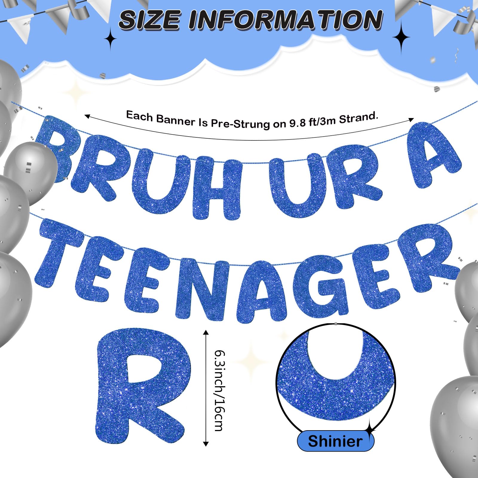 Funny and Memorable: the Bruh Ur a Teenager banner lettering on the party decorations not only catches your eye but also gives a funny vibe. It serves as a focal decoration or photo prop, making your party memorable and full of laughter and fun and the event joyous