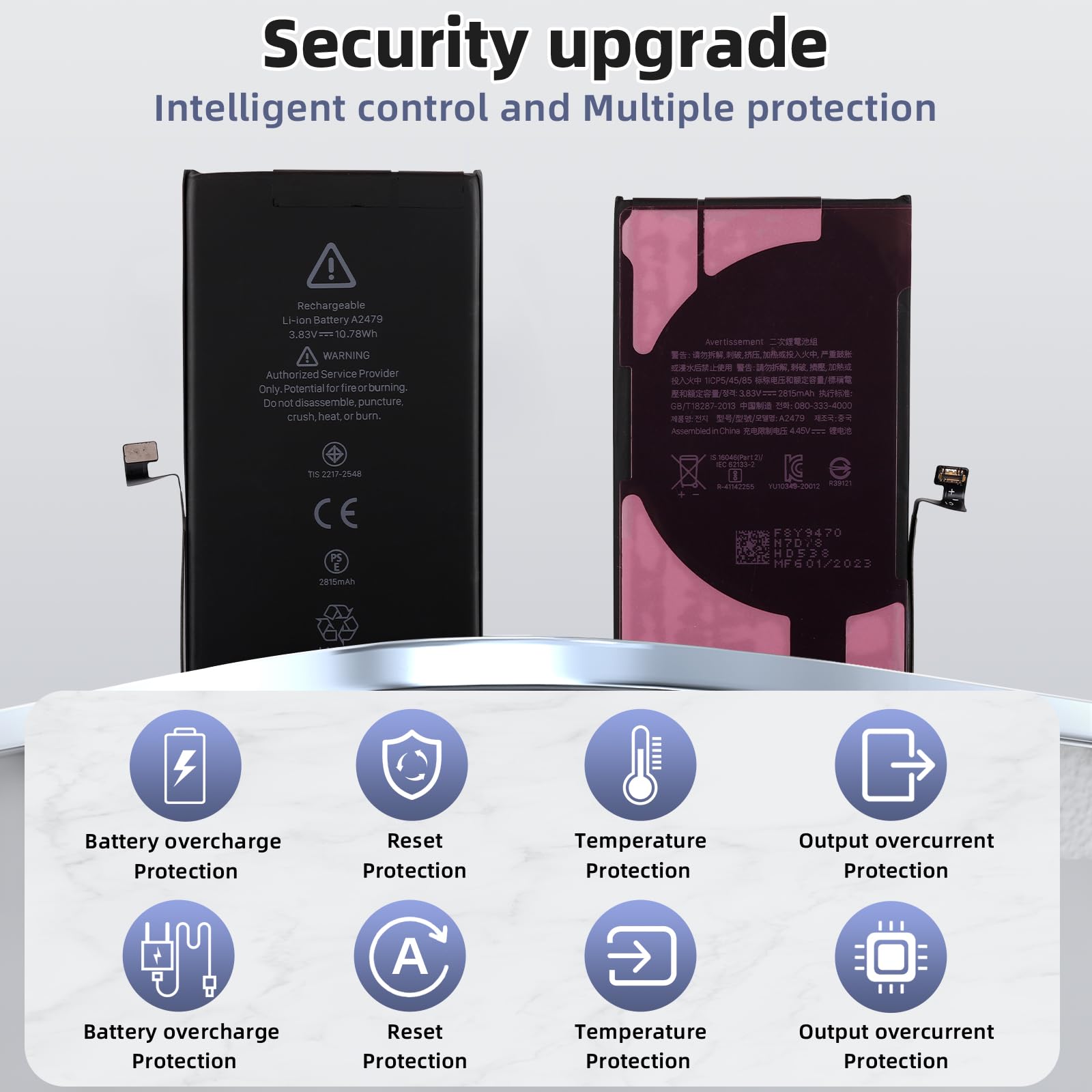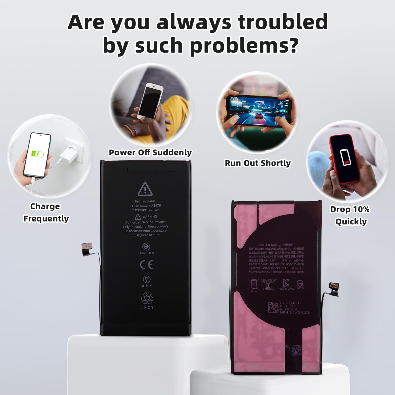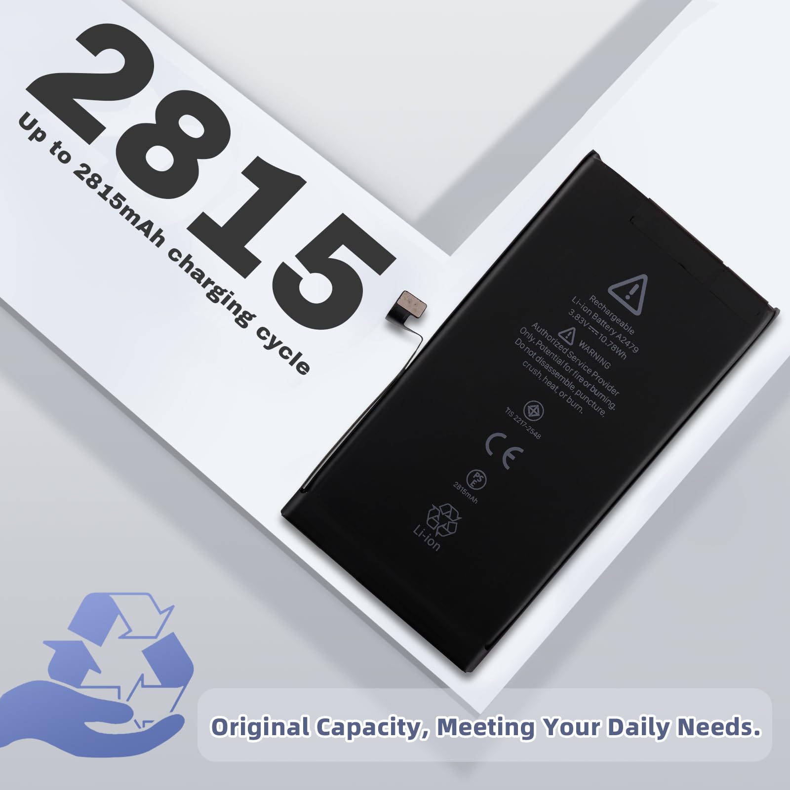 Item Specs: Model Number:A2479 Capacity: 2815mAh Voltage: 3.83V Compatibility: for iPhone 12/12 Pro Model A2172 A2402 A2403 A2404 Packaging: 1 x battery, 1 x toolkit Tips for installation: 1. Replacing the battery or the screen panel may require some tech skills, you may need to pay some fees for technician assistance. 2. The connecting points on the battery and screen panel is very fragile, be more careful when replacing it, make sure your hands are dry when install the battery or the screen. 3. Check if the battery or the screen works well by connecting the cable before assemble your phone. 4. Do not throw out the packaging box, keep it for at least 30 days if you got any issues, so that it would be more convenient for us to help you. Contact us Send us a message on Amazon whenever you have questions or get any issues with our product, our customer service team will answer you within 24hrs, your patience is highly appreciated.