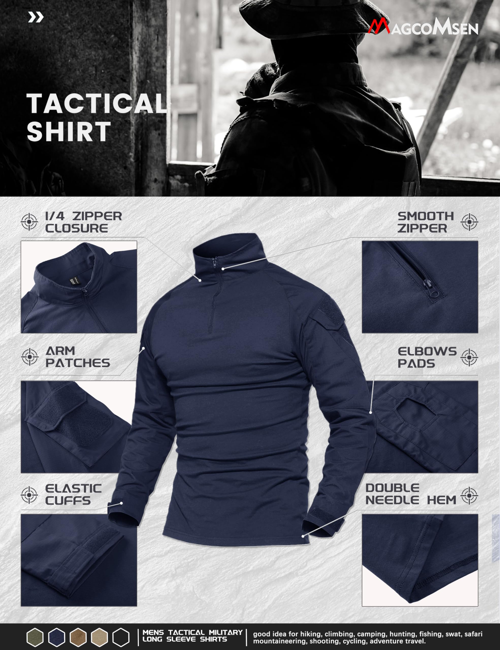1/4 front zip; Good for spring, summer, autumn and winter