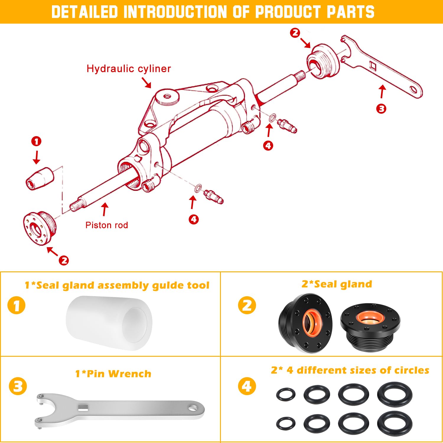 Products include - 1 *pin wrench, 1 *seal gland assembly guide tool, 2 *seal gland, 2*4 different sizes of black rings.