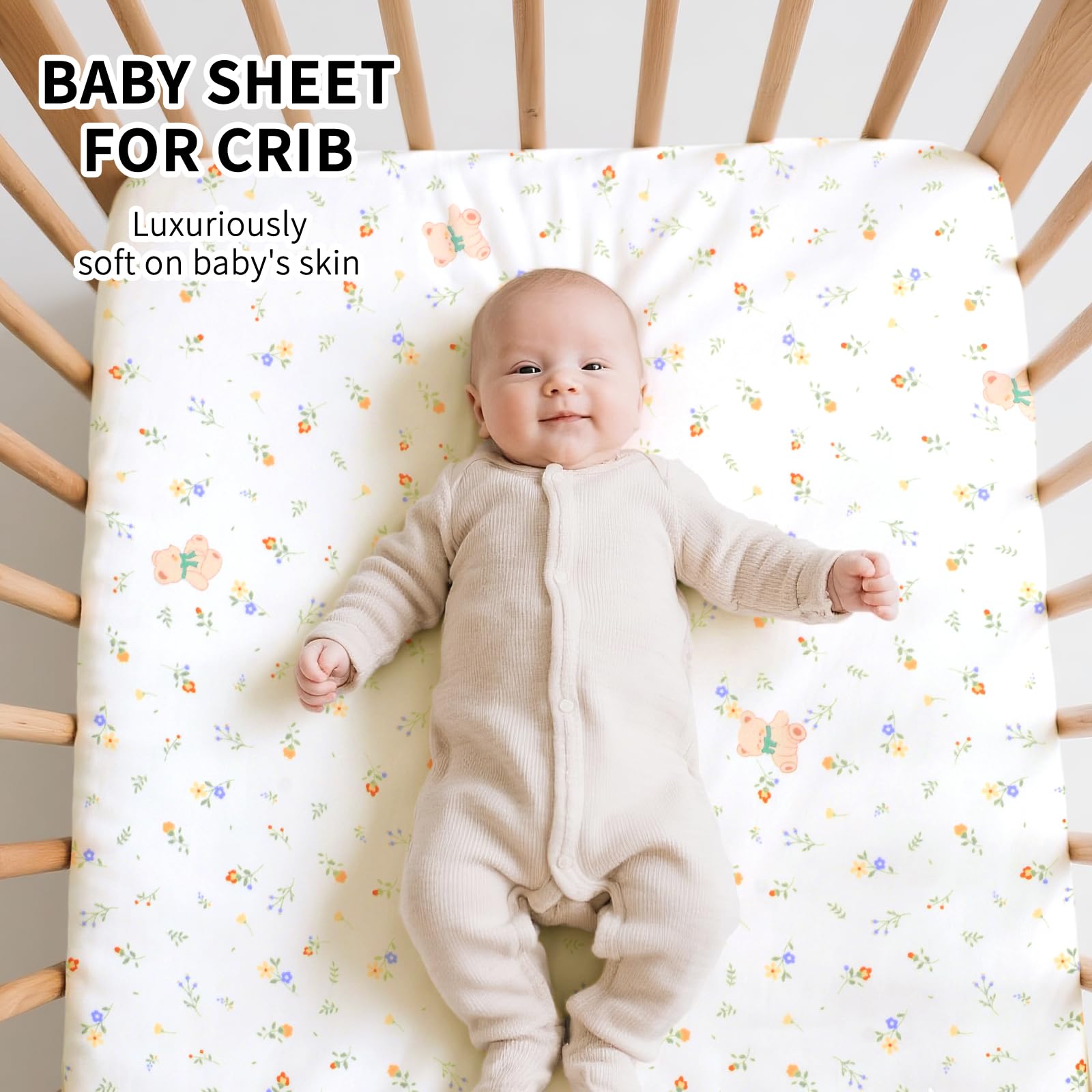 【WASHING CARE INSTRUCTIONS】Our fitted crib sheet is easy to clean.Machine wash on gentle cycle. Do not bleach.Try to avoid sun exposure, can dry it on the reverse side.The more you wash it, the softer it gets.