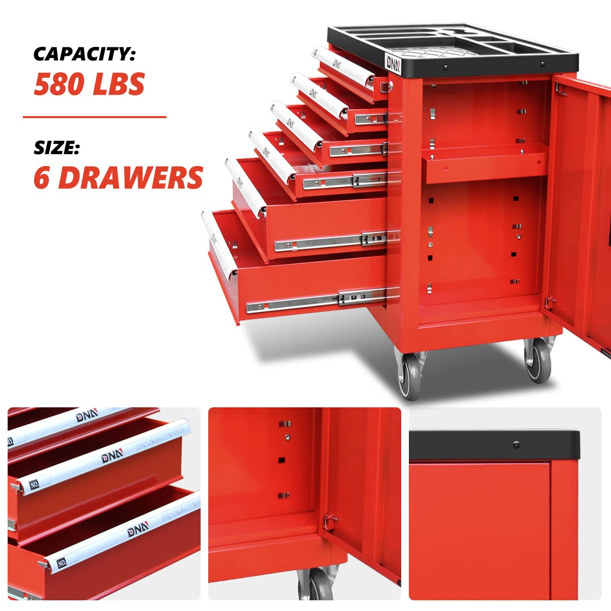 Great loading capacity-A high-capacity rolling tool cabinet with 6 drawers Up to 700Lbs Capacity, Lockable Drawers with Key. Internal lock system, safe guard your tools. Large Caster Wheels with Locking Swivels