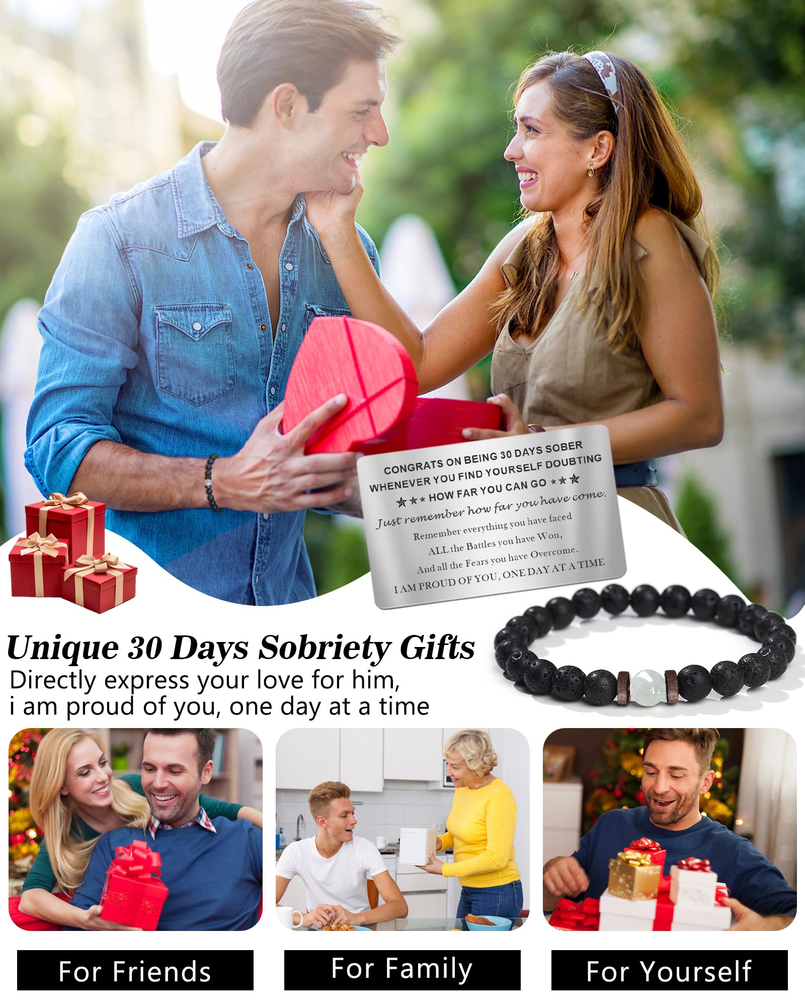 【Unique Sobriety Gifts for 30 Days】This Moonstone bracelet with a inspirational 1 Month Sober Card definitely as a great 30 Days sobriety gifts for men women, come with a nice gift box that can be given as a gift directly.The moonstone is excellent to help Purify Stress or Anxiety, Bring people Love and Protection, Guides make Right Decisions, attract Good Fortune. Courage and Confidence. work great as One Month Clean AA Recovery Sobriety Card, one month sober gifts for men women