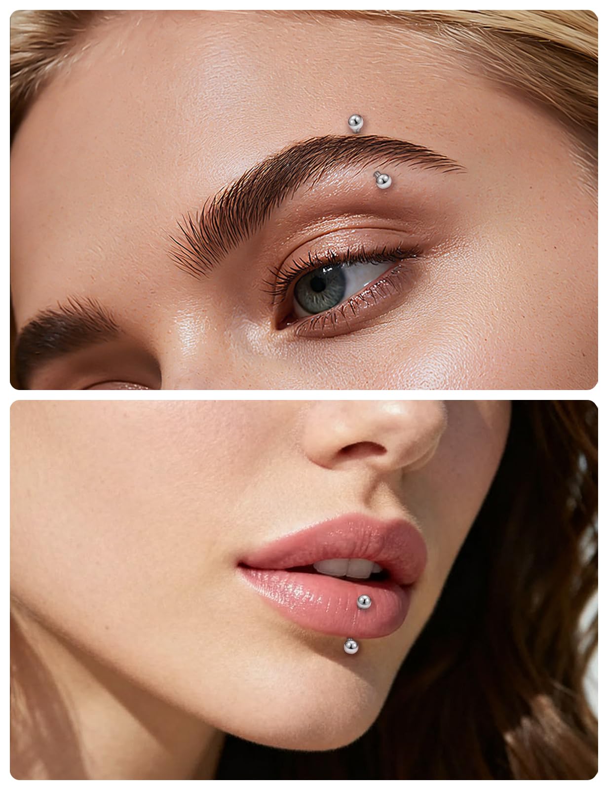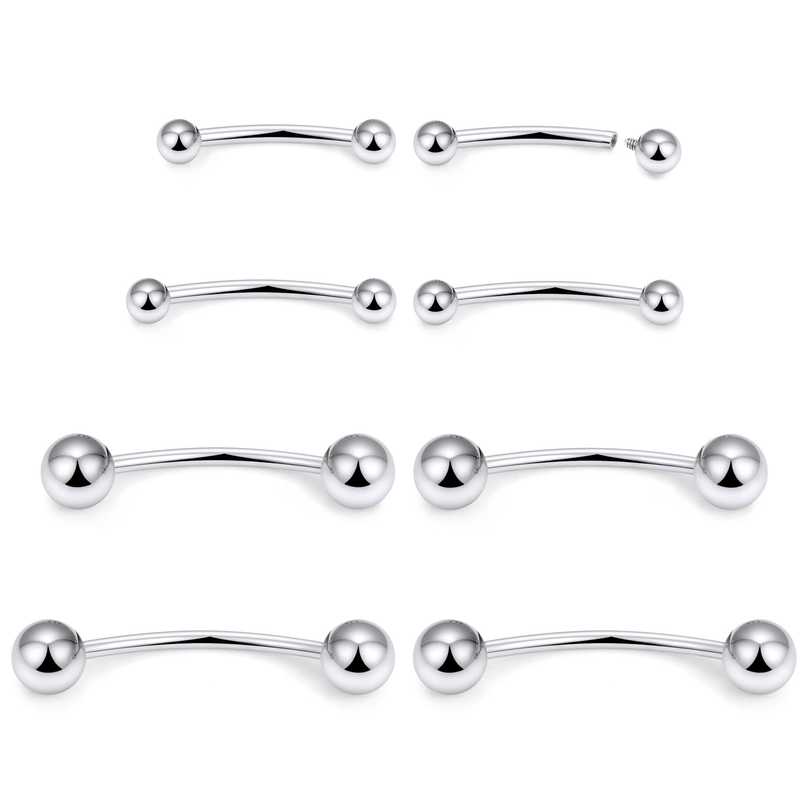 【Multiple Uses】: Titanium internal thread Curved Barbell Piercing Used as Eyebrow Piercing Jewelry, Anti Eyebrow Piercing Jewelry, Vertical Labret Lip Jewelry, Rook Earrings, Bridge Piercing Jewelry, Small Blley Button Ring, Navel Rings, Frog Eyes Piercing Jewelry, Snake Eyes Tongue Rings, Snake Eyes Piercing Jewelry, Vertical Hood Piercing Jewelry, Surface Tragus Piercing Jewelry, VCH Piercing Jewelry.