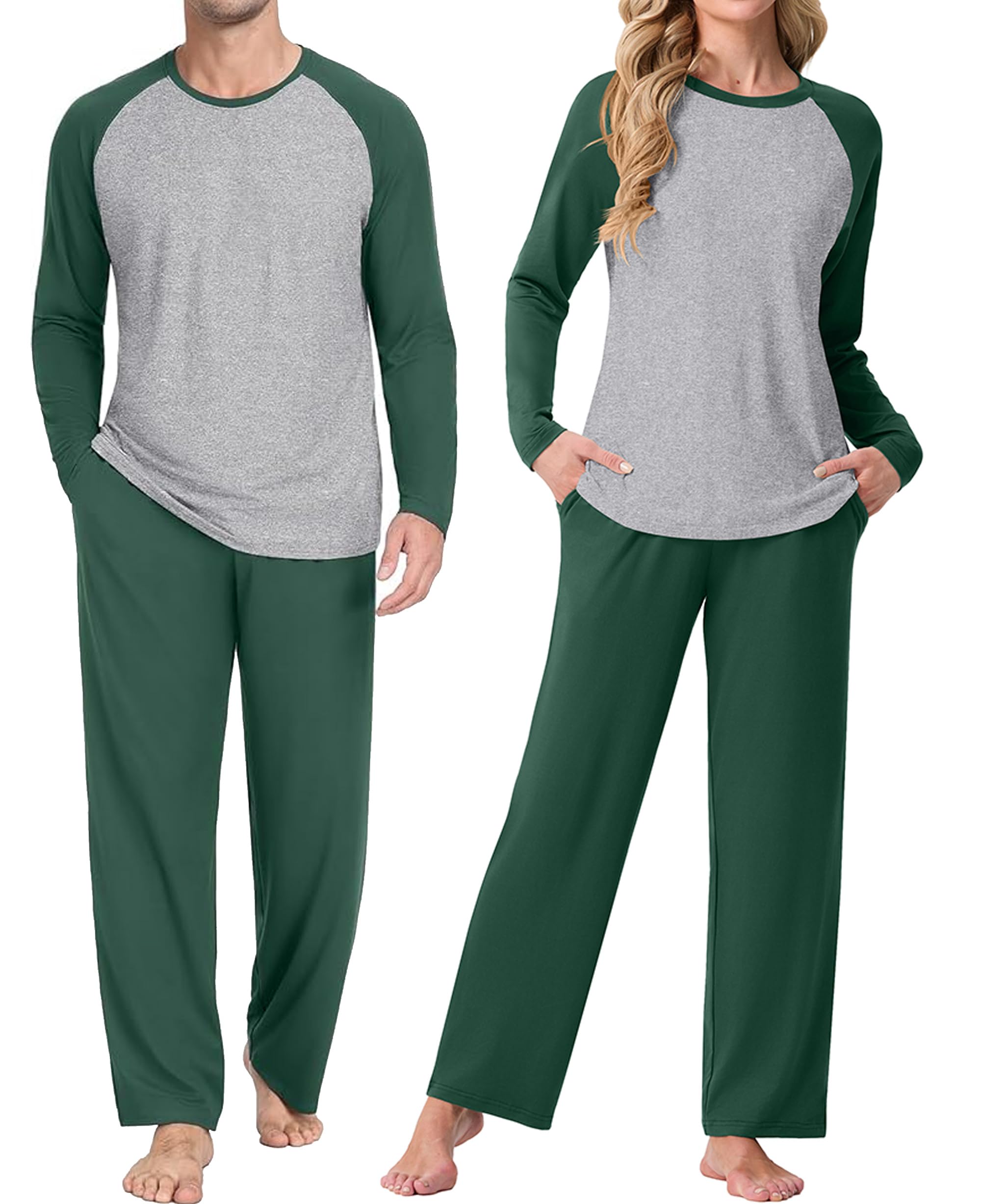 Classic practical design: Long sleeve top with a simple round neckline for easy dressing;Pants feature an elastic waistband and drawstring for adjustable comfort, ensuring restful sleepwear; Deep side pockets securely hold everyday essentials like phones and keys.