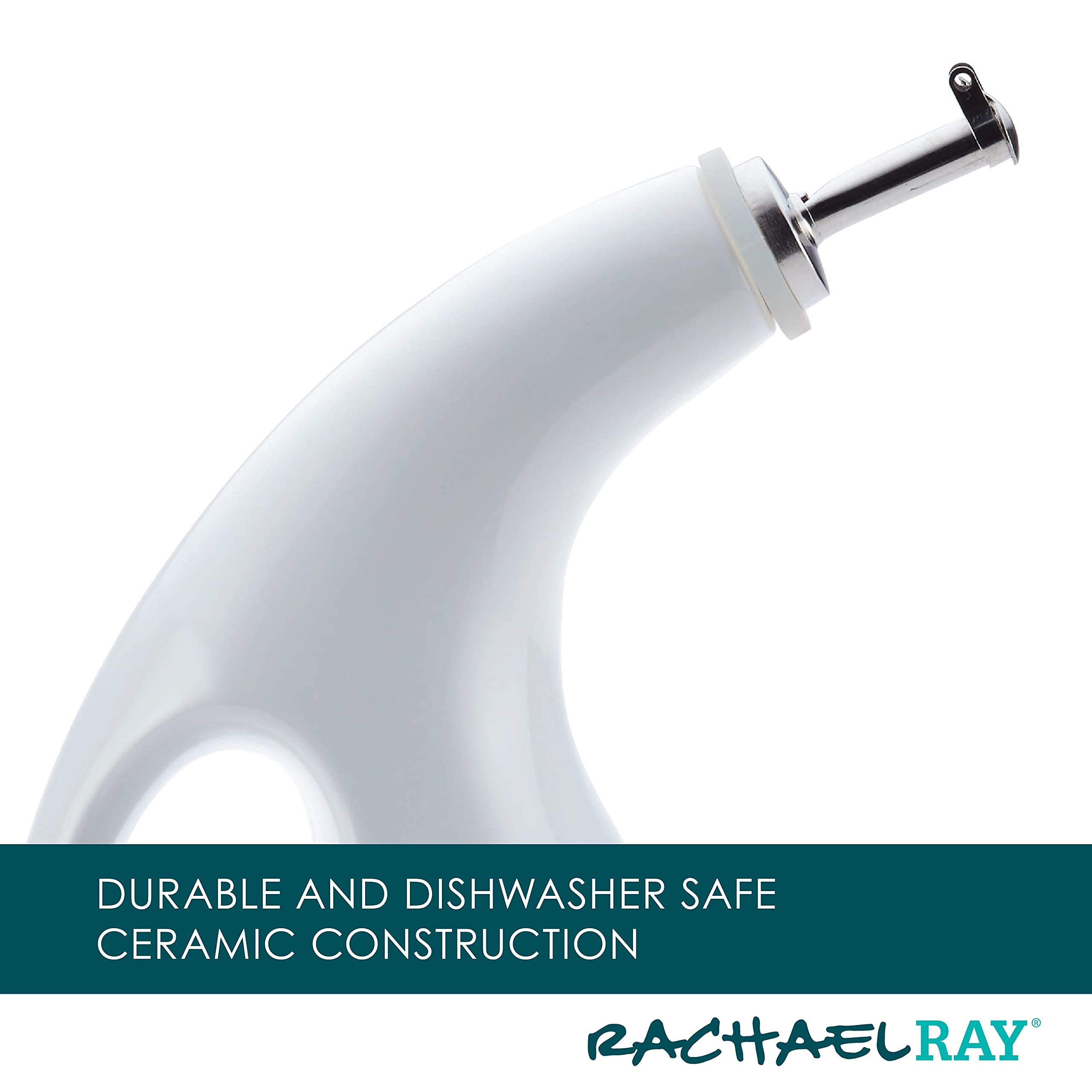 Made from durable, easy-clean, kitchen friendly ceramic, this Rachael Ray EVOO bottle is ideal for dispensing oil and vinegar. Designed for control and balance, this olive oil and balsamic vinegar bottle has a built-in handle for an easy grip when pouring oils and dressings onto breads, salads, and more. Dishwasher safe for easy cleanup and boasting awesome color, this versatile dispenser partners great with Rachael Ray’s ceramic dipping cups, dinnerware and serveware for a stylish splash to any decor.