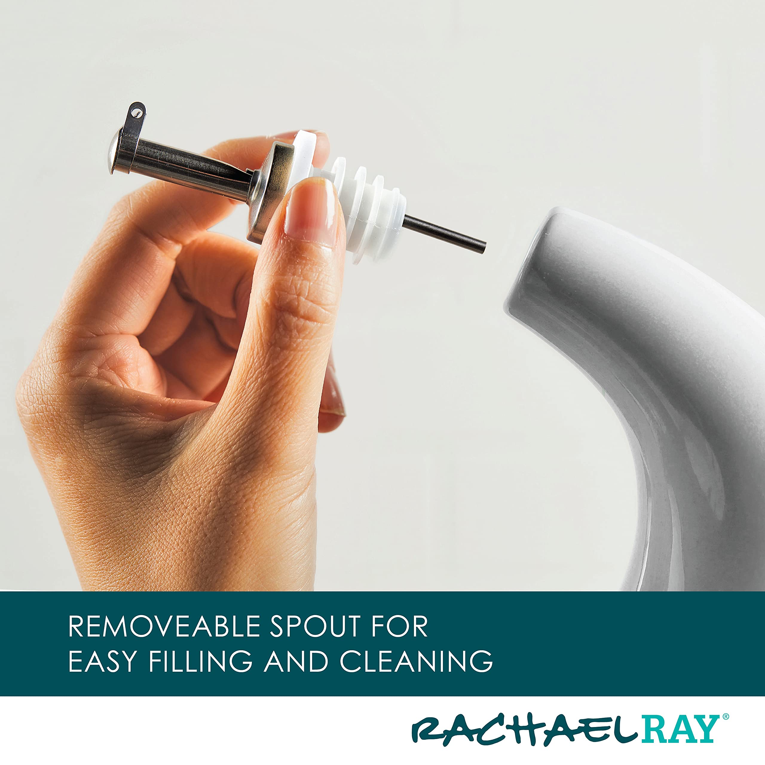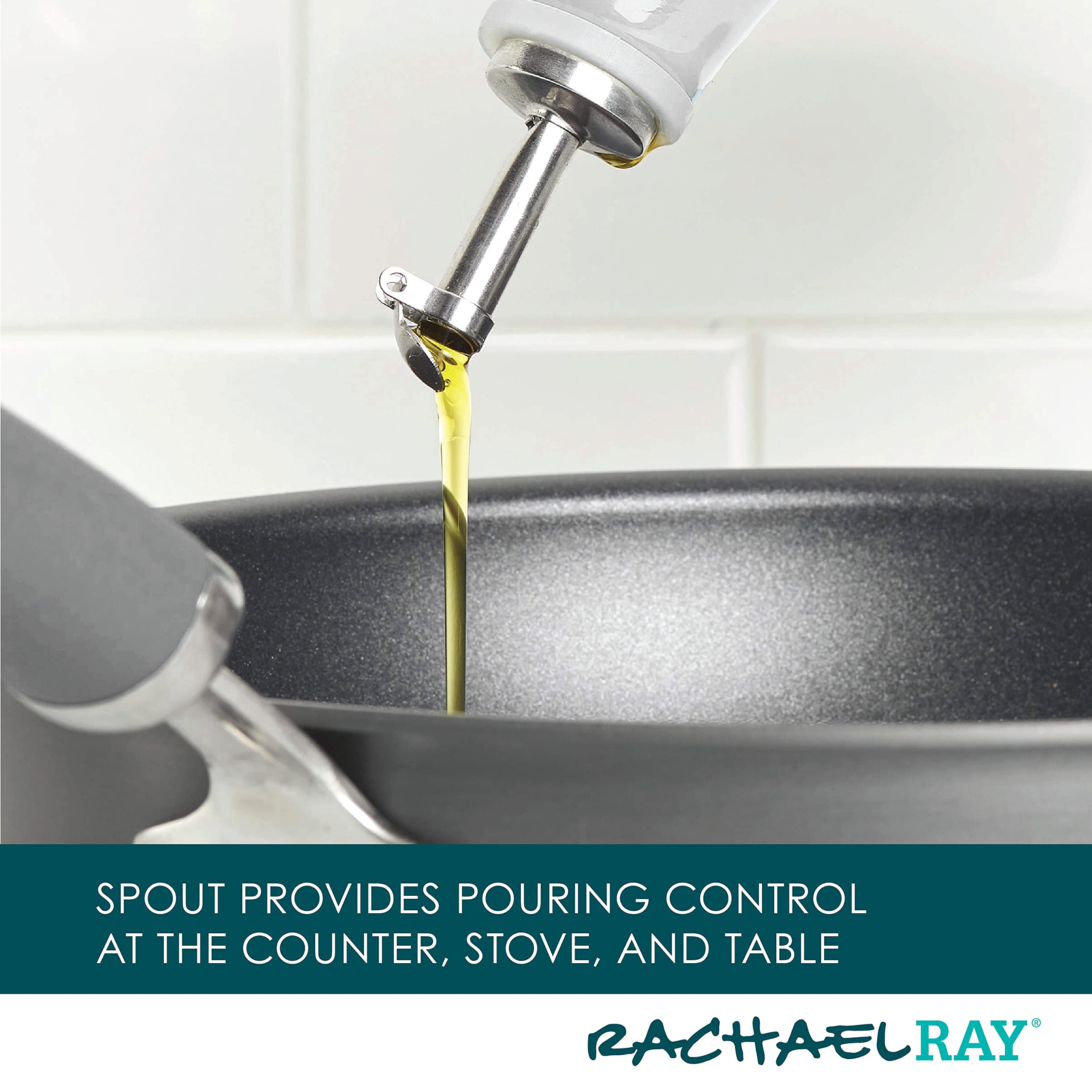 PRECISION POUR: Rachael Ray EVOO bottle is ideal for use as a cruet and salad dressing duspenser and features unique spout designed for perfect pouring of oil and vinegar