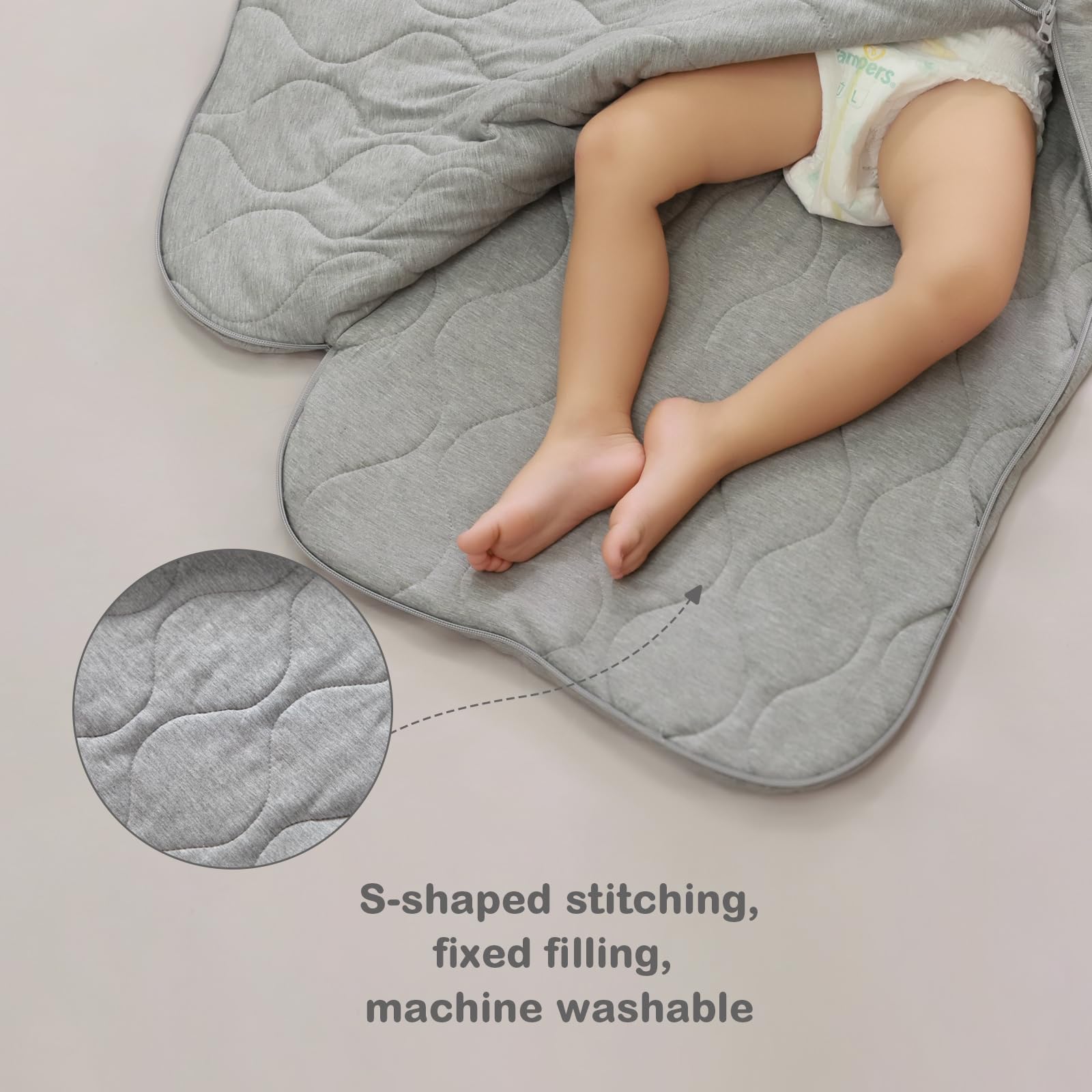 【SMOOTH 2-WAY ZIPPER】 Unzips from the Top, which makes it easy to place baby in sack. Unzips from the Bottom, which makes it convenient for diaper changing. With zipper protectors on the back and at the end, protects baby from scratches