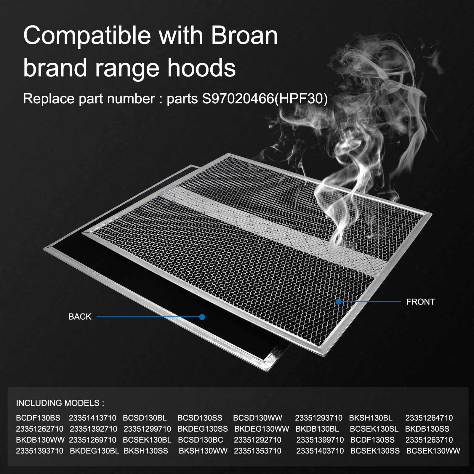 【Replacement Filters】S97020466 range hood filter compatible with Broan's models : BCDF130BS, 23351413710, BCSD130BL, BCSD130SS, BCSD130WW, 23351293710, BKSH130BL, 23351264710, 23351262710,23351392710,23351299710, BKDEG130SS, BKDEG130WW,BKDB130BL,BCSEK130SL,BKDB130SS,BKDB130WW,23351269710,BCSEK130BL,BCSD130BC,23351292710,23351399710,BCDF130SS,23351263710,23351393710,BKDEG130BL,BKSH130SS,BKSH130WW,23351353710,23351403710,BCSEK130SS,BCSEK130WW