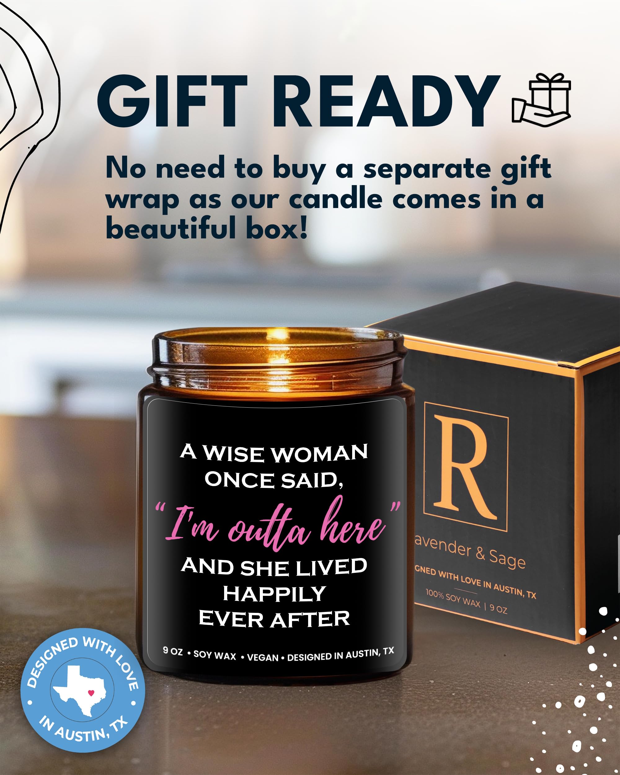 💠Gift Ready: Our scented candle comes with a beautiful box which makes it a unique gift to your loved ones. No need to buy a separate gift wrap or box because this is gift-ready! Also great as divorce gifts for women funny & divorce presents!