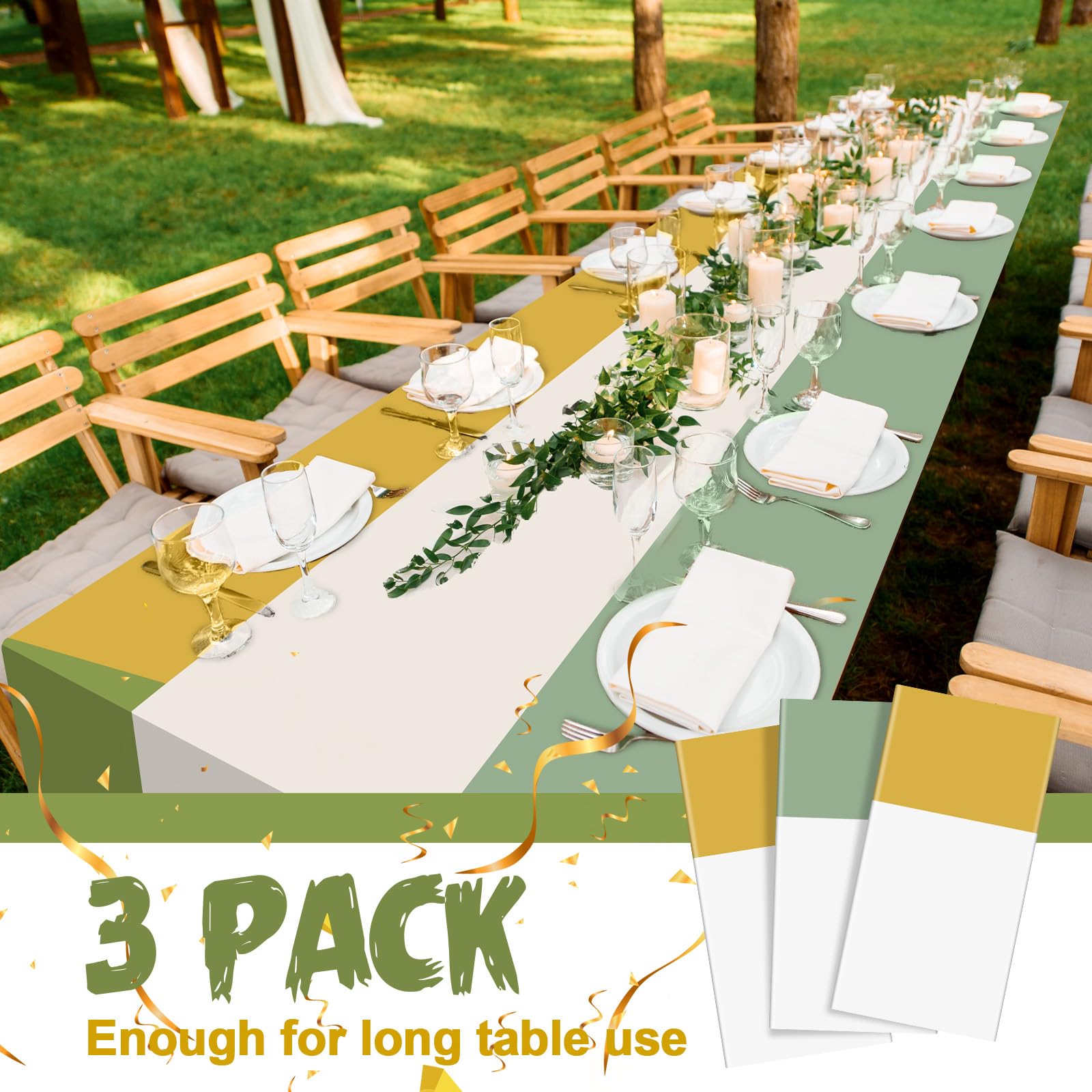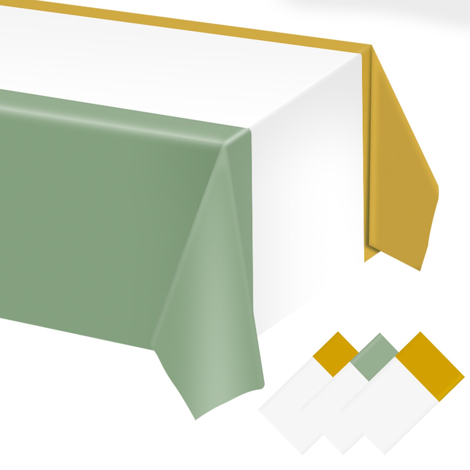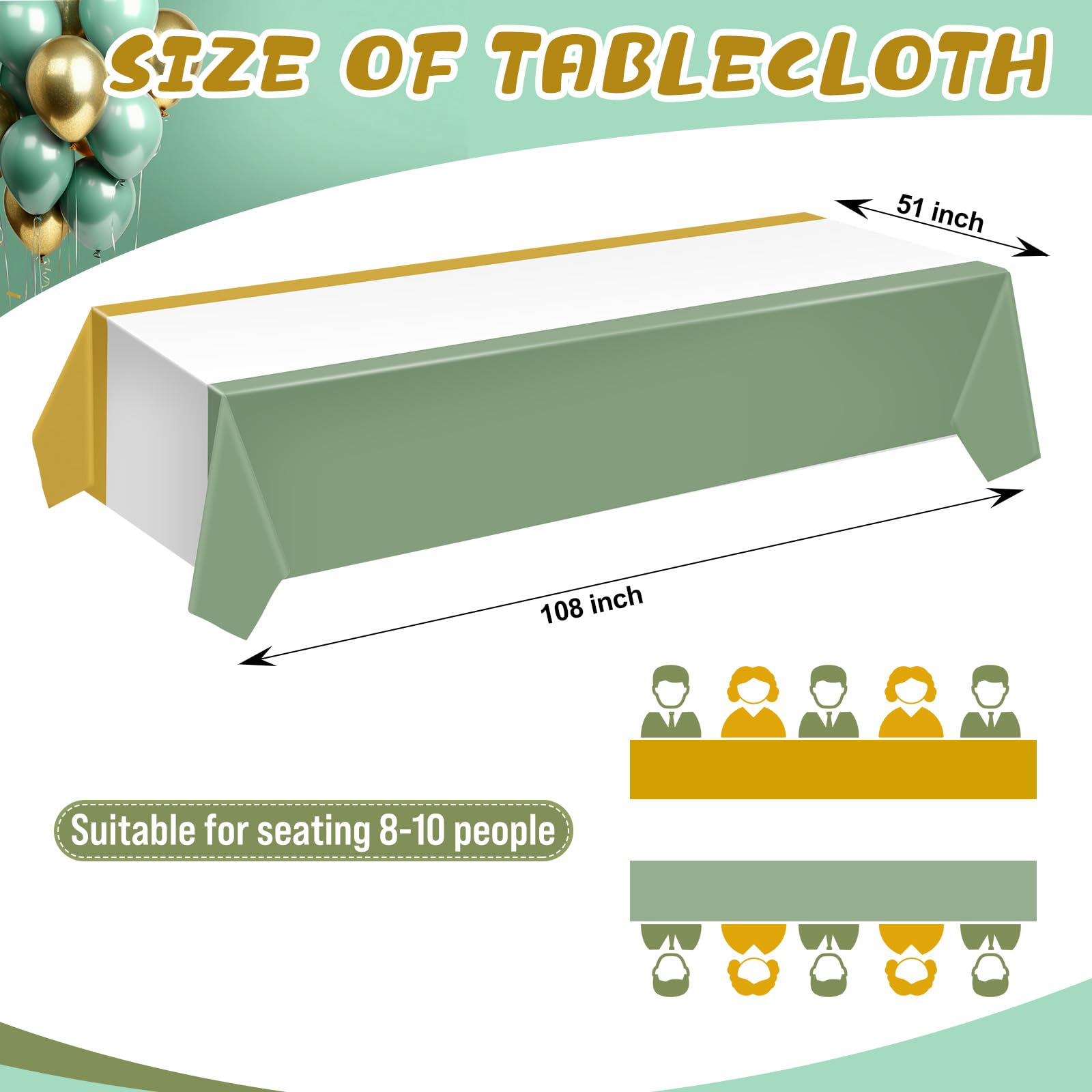 Elegant Design: the sage green, white and gold design of these plastic table cloth disposable adds elegance to any dining experience, you can use them directly or cut them to decorate your wedding table or desk according to your needs and preferences; Your guests will be impressed with the sophisticated atmosphere they create