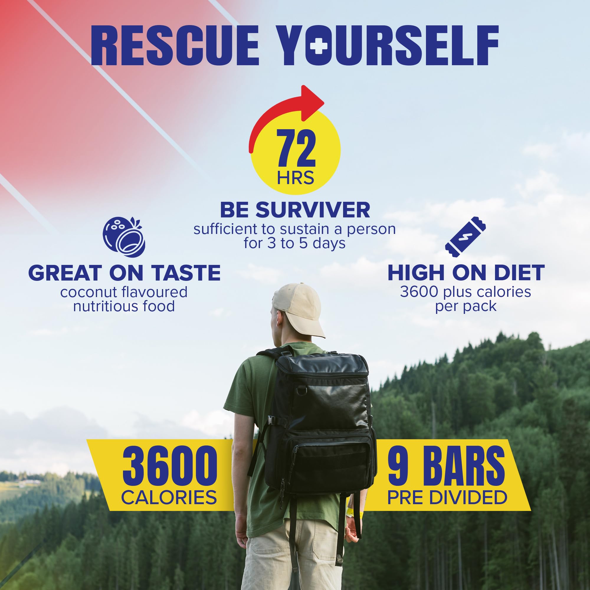 Useo.S. Rations emergency 3600 calorie food bar - 3 day/72 hour package with 5 year shelf life net wt. 1.60lbs (756G) 15, 075 kj. 3600 kcal per package. High energy value. Ready to eat. Perfect for anyone in the process of building a disaster/emergency Kit. The SOS emergency food rations are us Coast guard approved and has a shelf life of 5 years from the date of manufacture. Content: each package contains 9 delicious bars providing 410 calories per bar Totaling over 3600 calories per package. Non-thirst provoking formula offers maximum survival capacity with drinking water restriction under all environmental conditions. Directions: eat three food bars per person per day