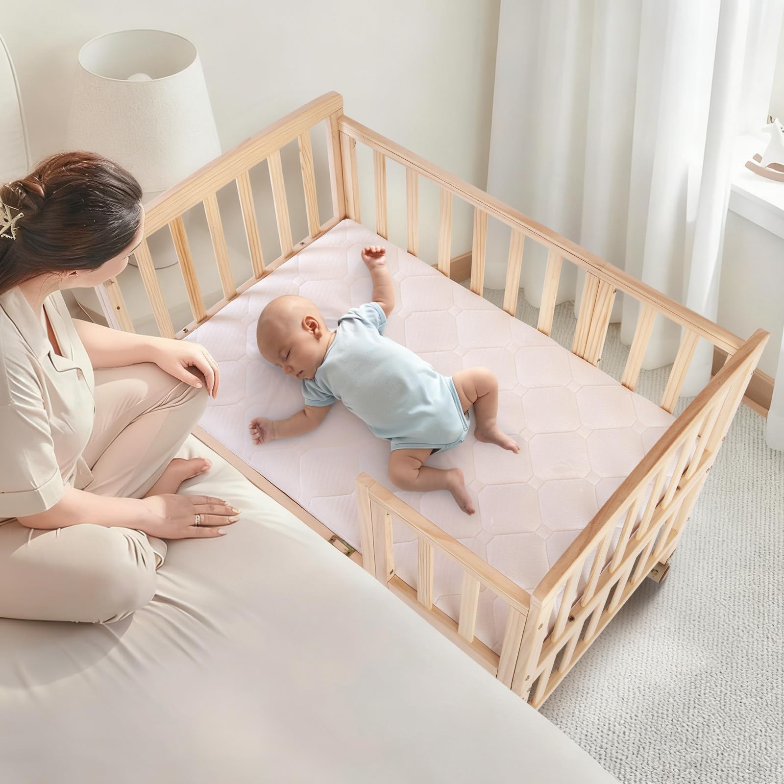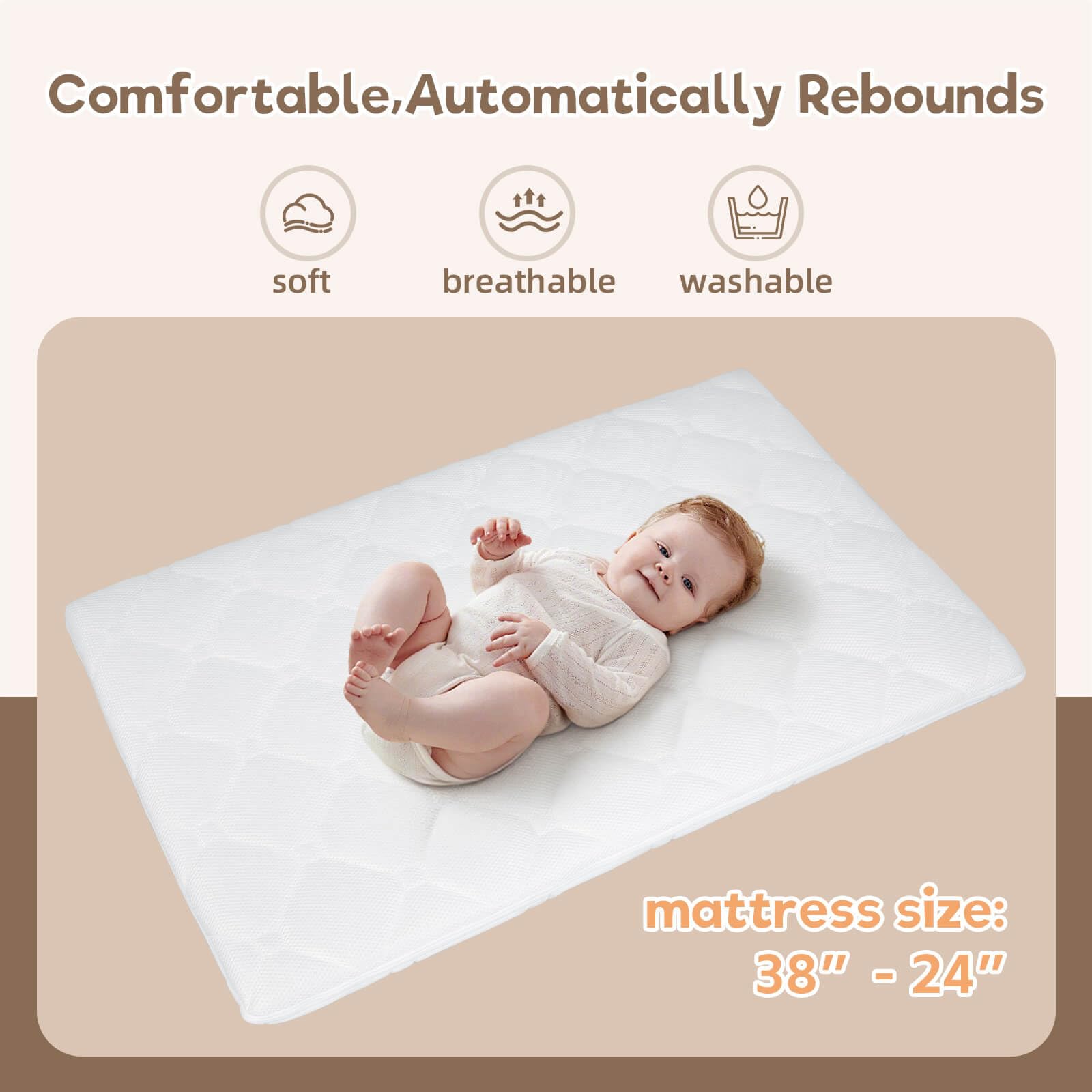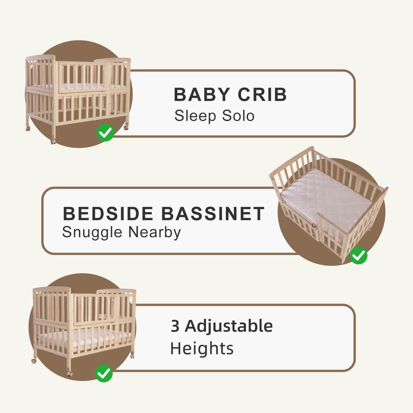 Premium New Zealand Pine Wood Crib Set:Features a plush,removable & machine-washable mattress with soft skin-friendly cover – exceptional comfort,safety,and long-lasting quality for your baby at an unbeatable value