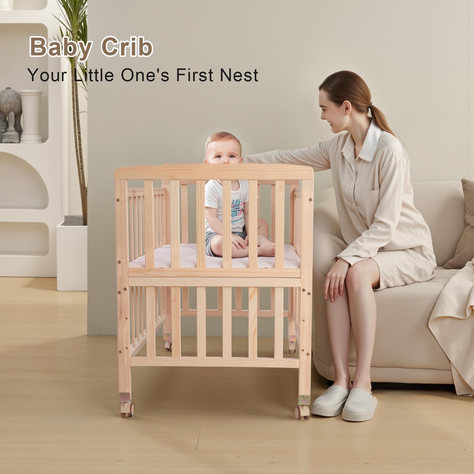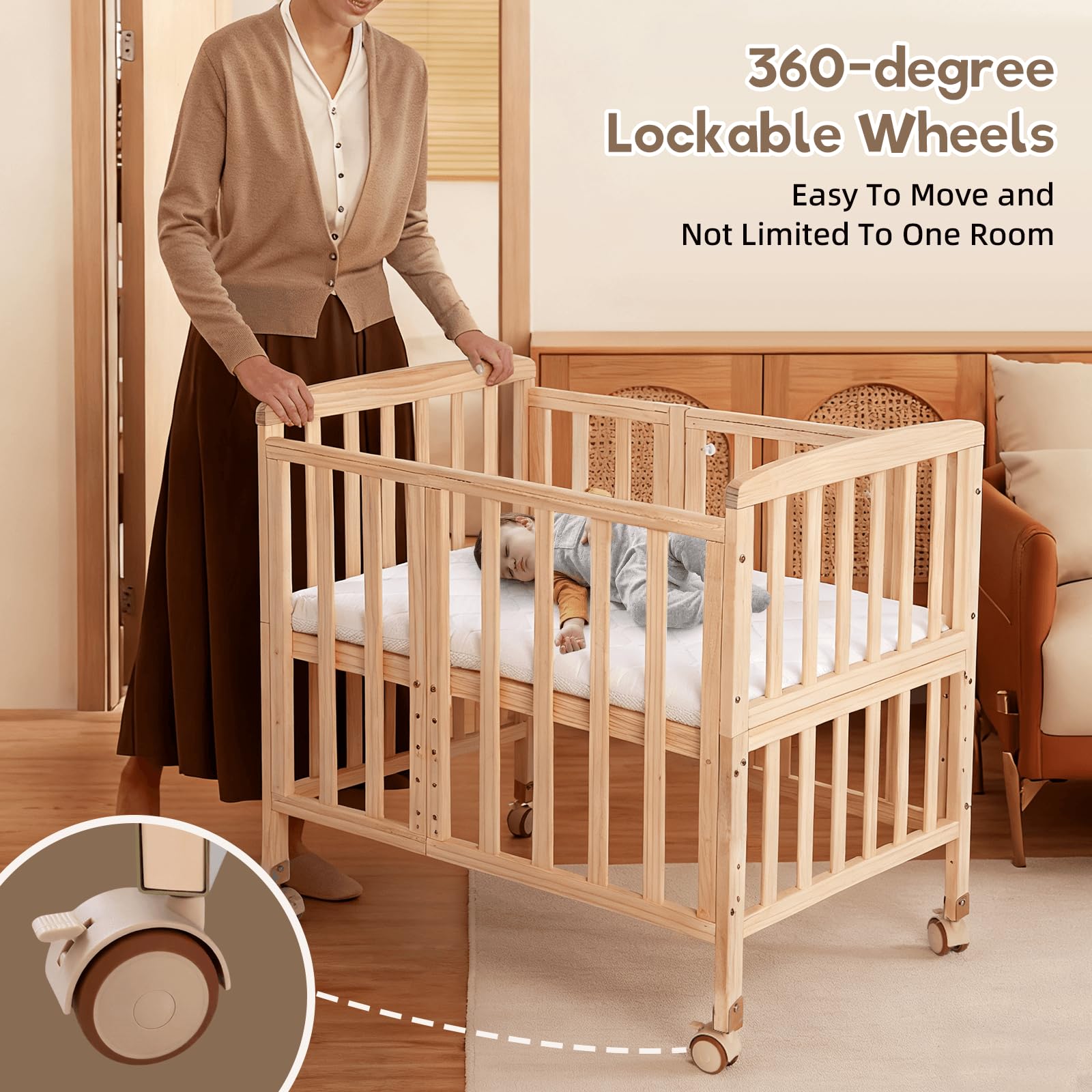 Flwrgirl Baby Bassinets Bedside Sleeper - Portable Pine Wood Bedside Bassinet with Mattress,3 Heights Small Mini Crib,Baby Crib for Newborns,Unpainted