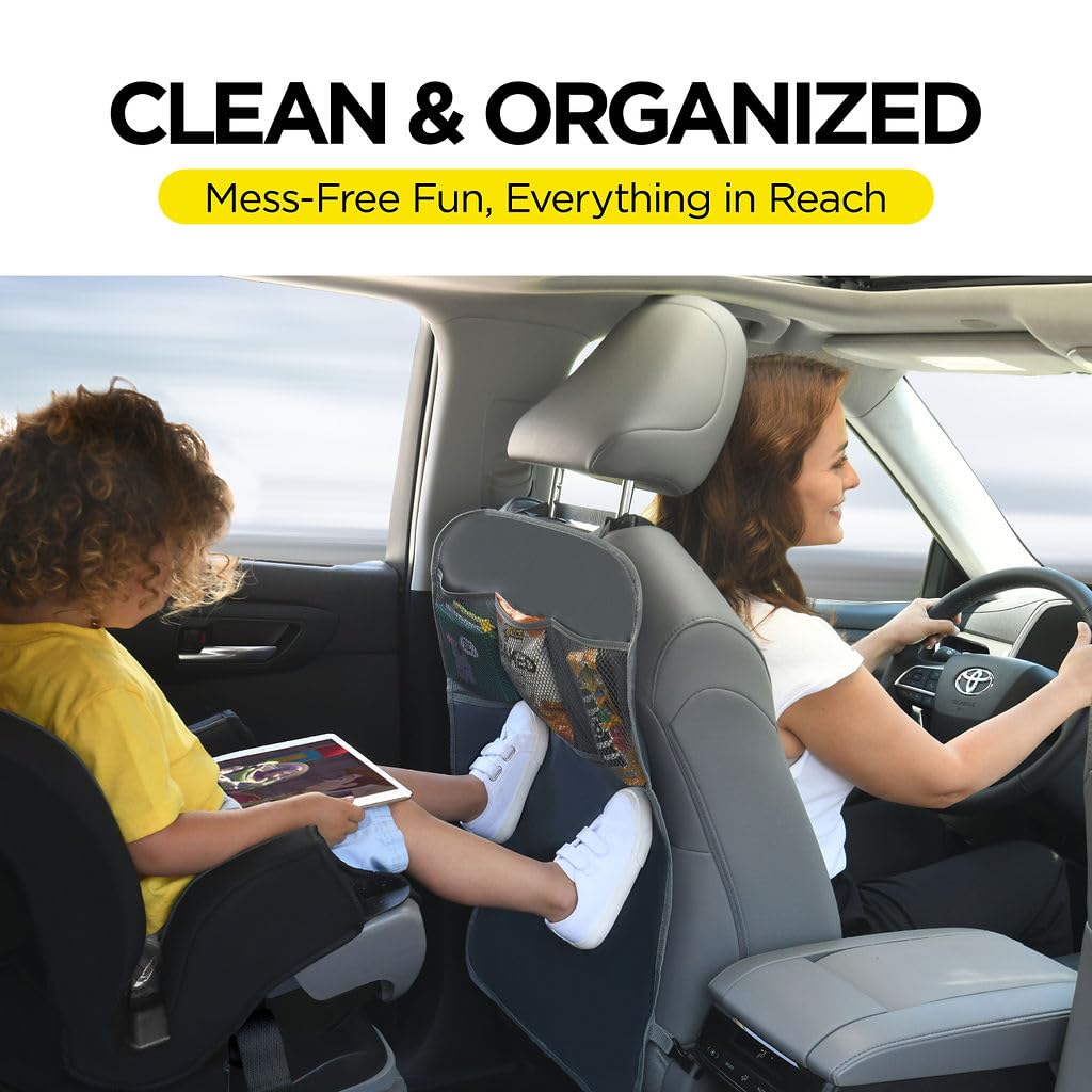 ✓ Simple Installation - Our Seat Back Protector attaches in less than a minute to your seats and has an anti-slip feature that keeps it put while the car is in motion! Simply adjust the top and bottom buckle straps according to your needs; That’s it!