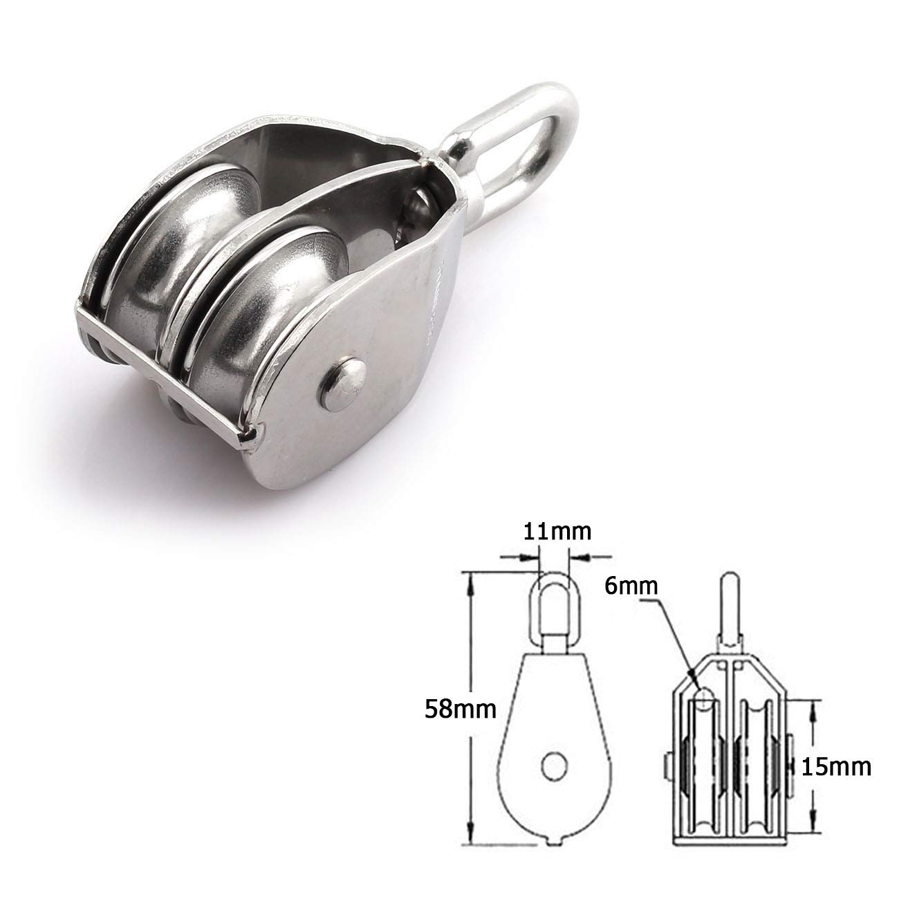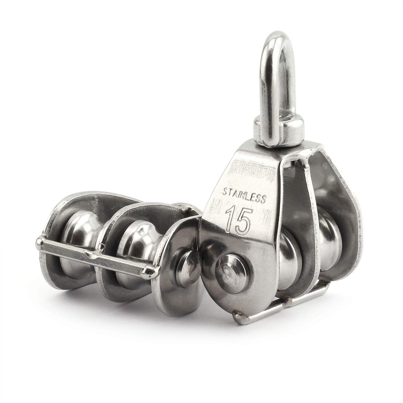 Package Content: 2-Pack M15 Stainless Steel Double Pulley Block
